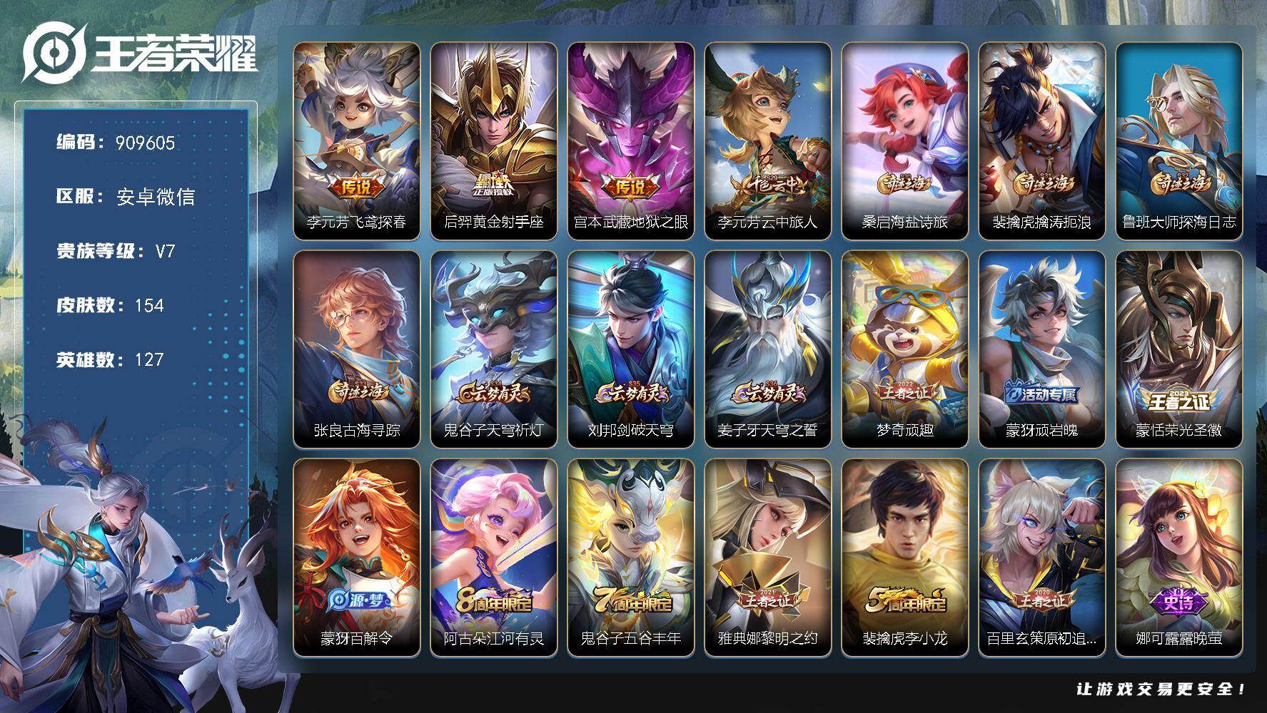 V7 1典藏 5传说 127英雄 154皮肤 可修改实名 男