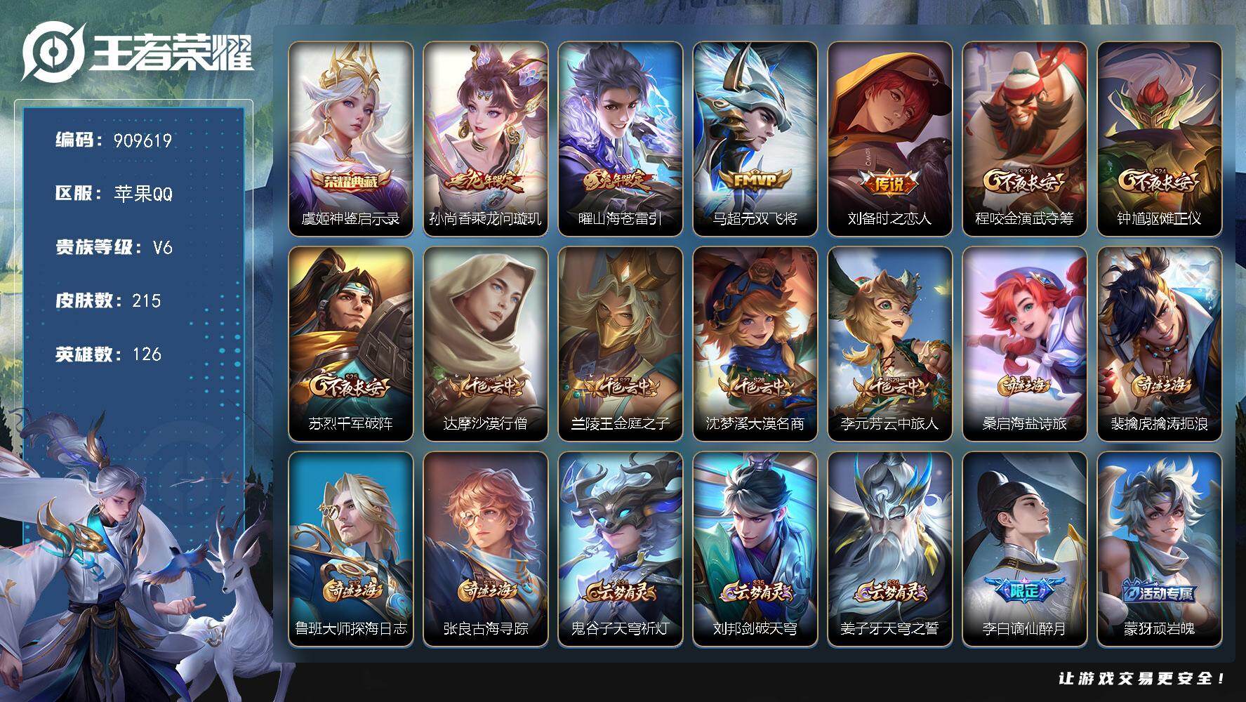 ]V6 1典藏 8传说 126英雄 215皮肤 可修改实名 男