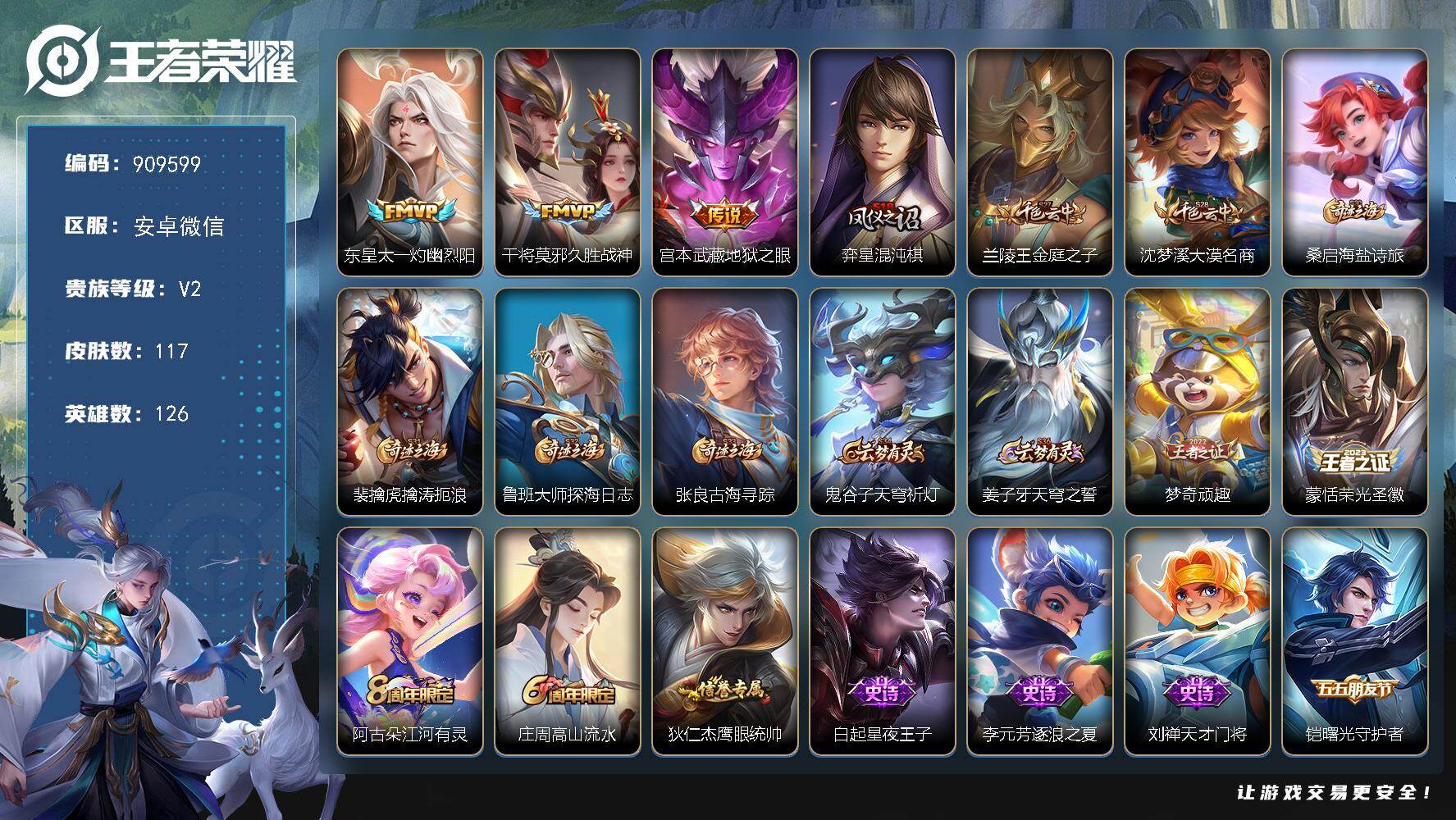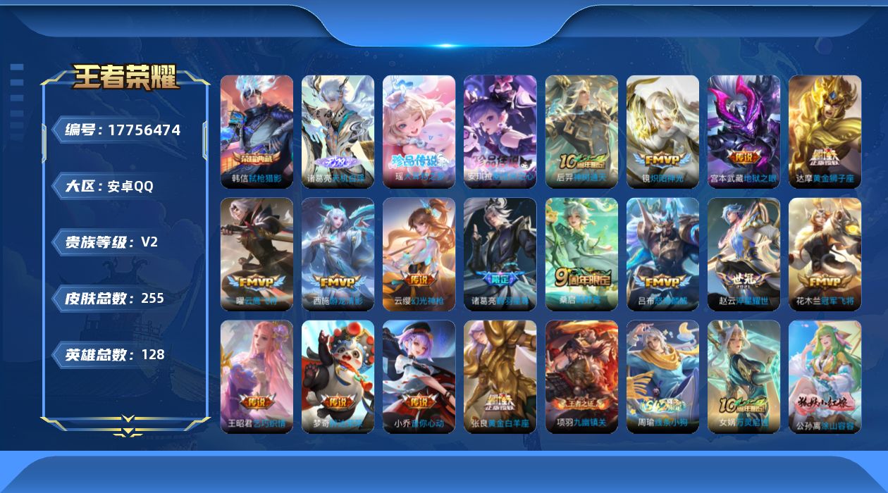 V2-最强王者段位-128英雄-255皮肤-1典藏皮肤-1无双-2珍品传说-16传说-69史诗