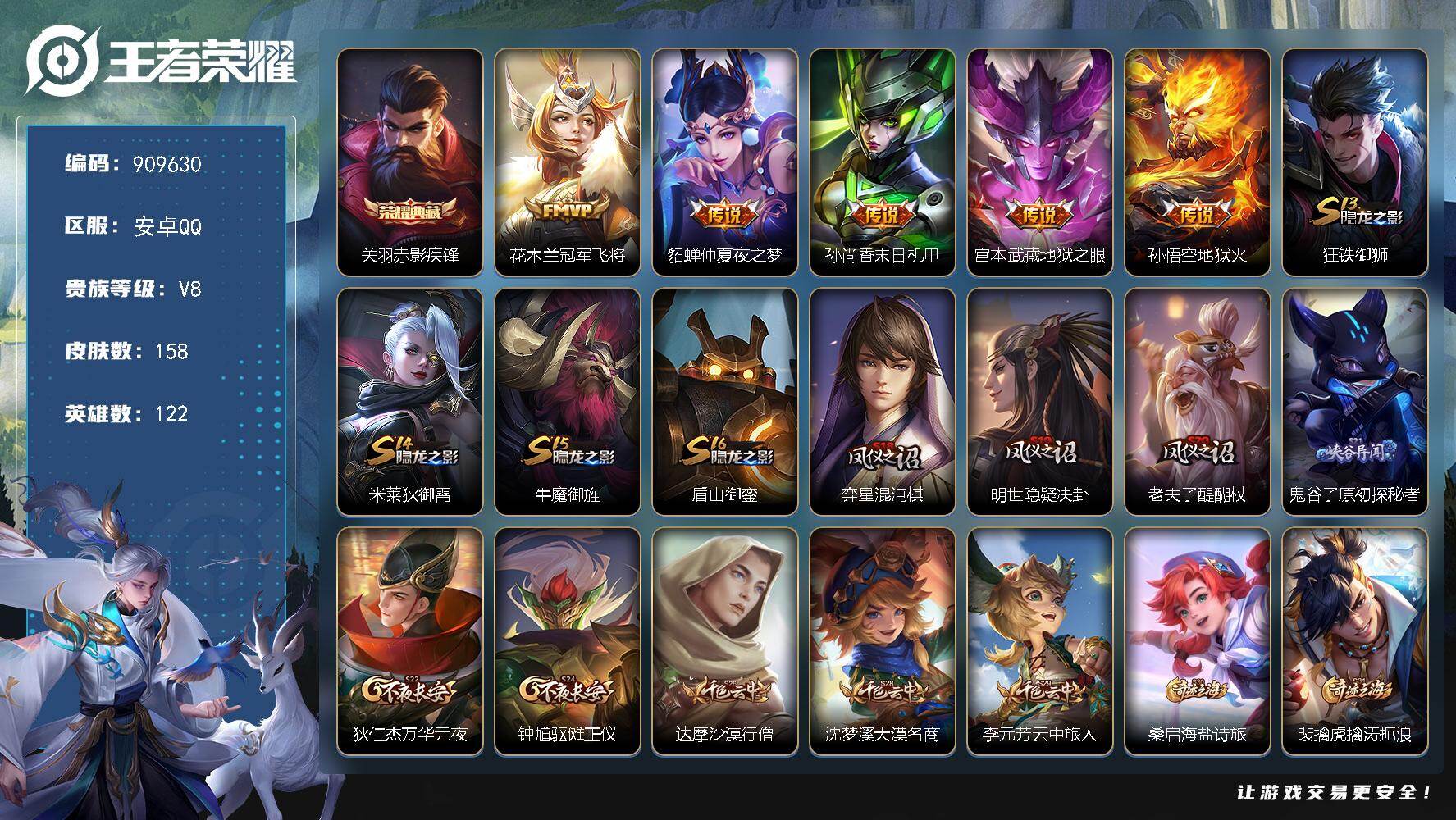 V8 1典藏 7传说 122英雄 158皮肤 可修改实名 男