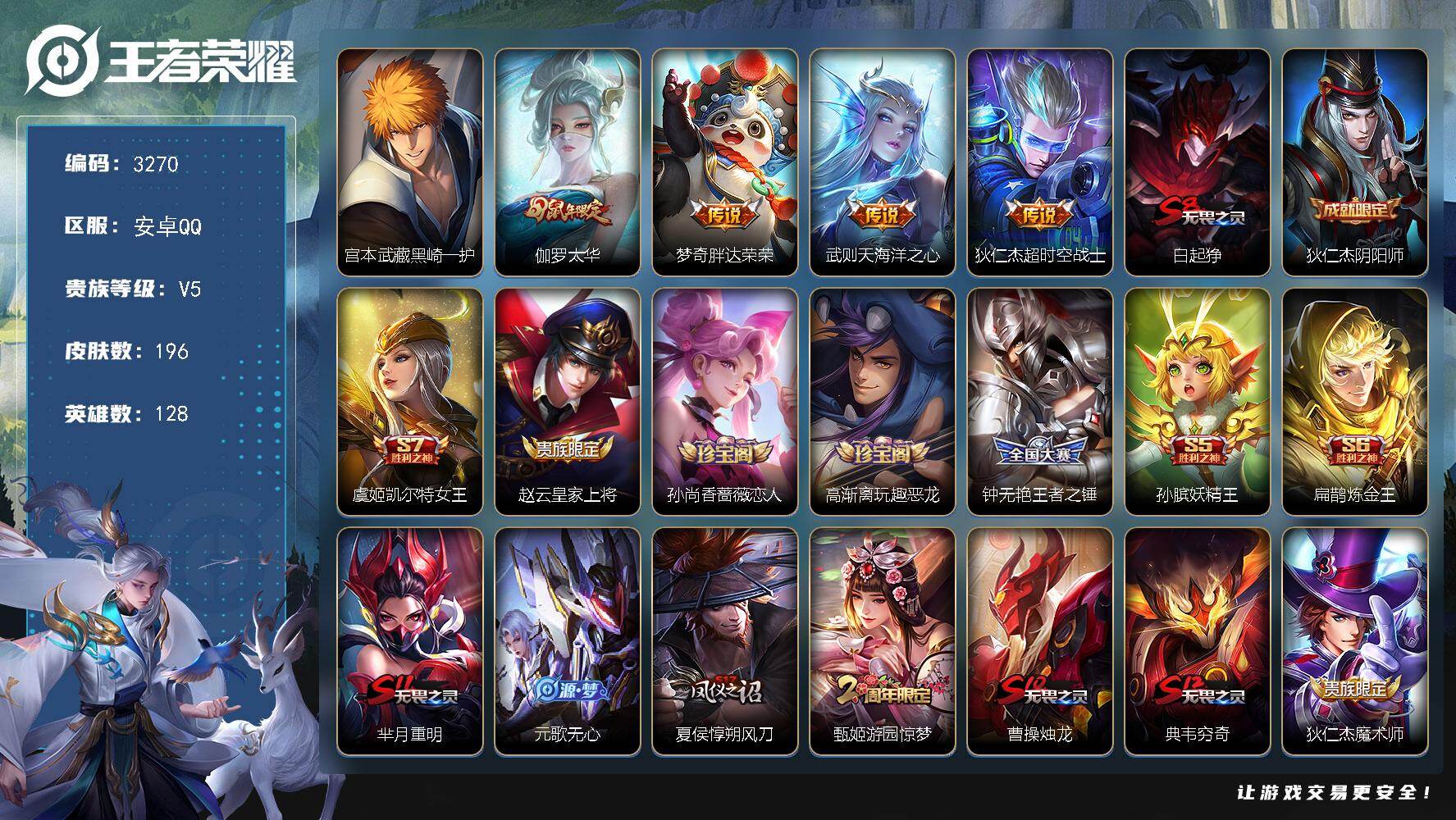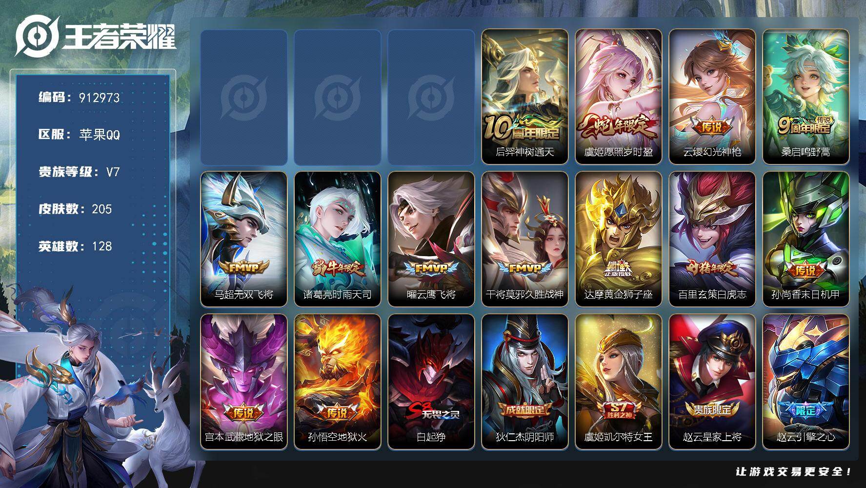V7-最强王者段位-128英雄-205皮肤-1典藏皮肤-14传说-47史