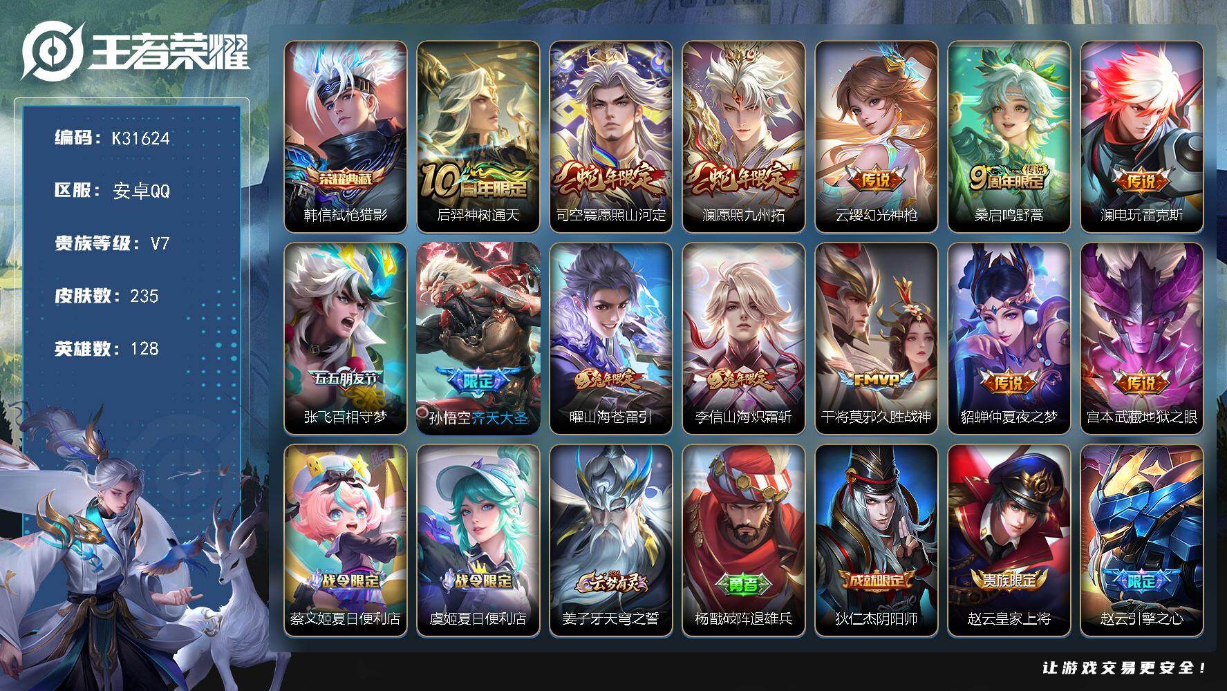 安卓Q-V7-尊贵铂金II段位-128英雄-235皮肤-1典藏皮肤-13传说-7