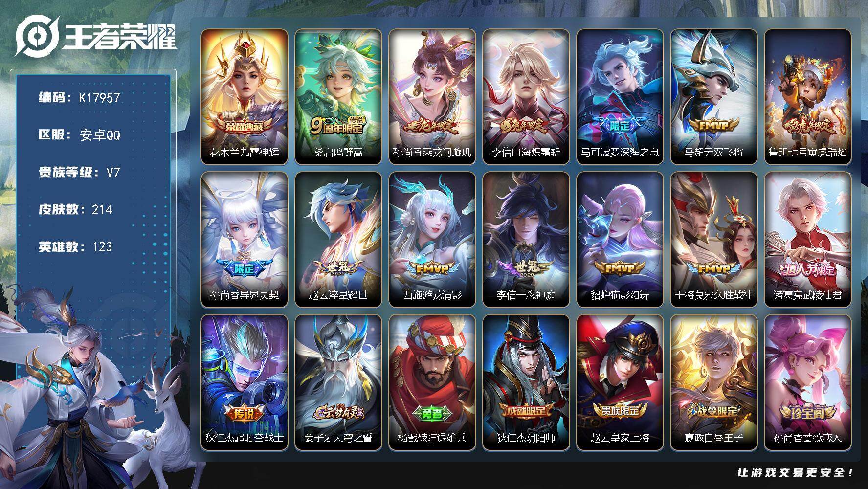 安卓Q-V7-至尊星耀V段位-123英雄-214皮肤-1典藏皮肤-14传说-50