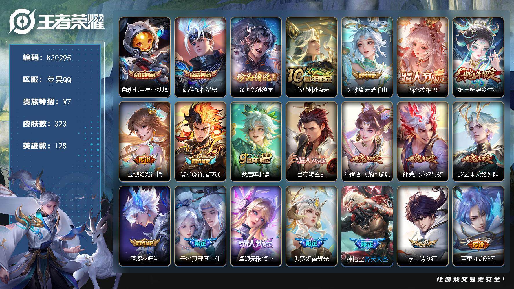 V7-永恒钻石I段位-128英雄-323皮肤-2典藏皮肤-1珍品传说-