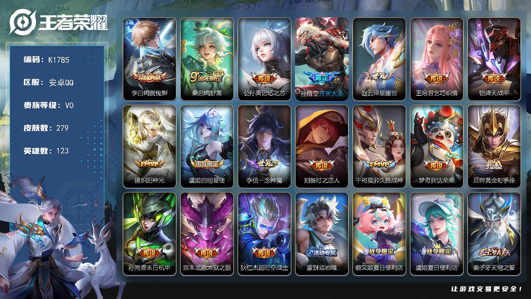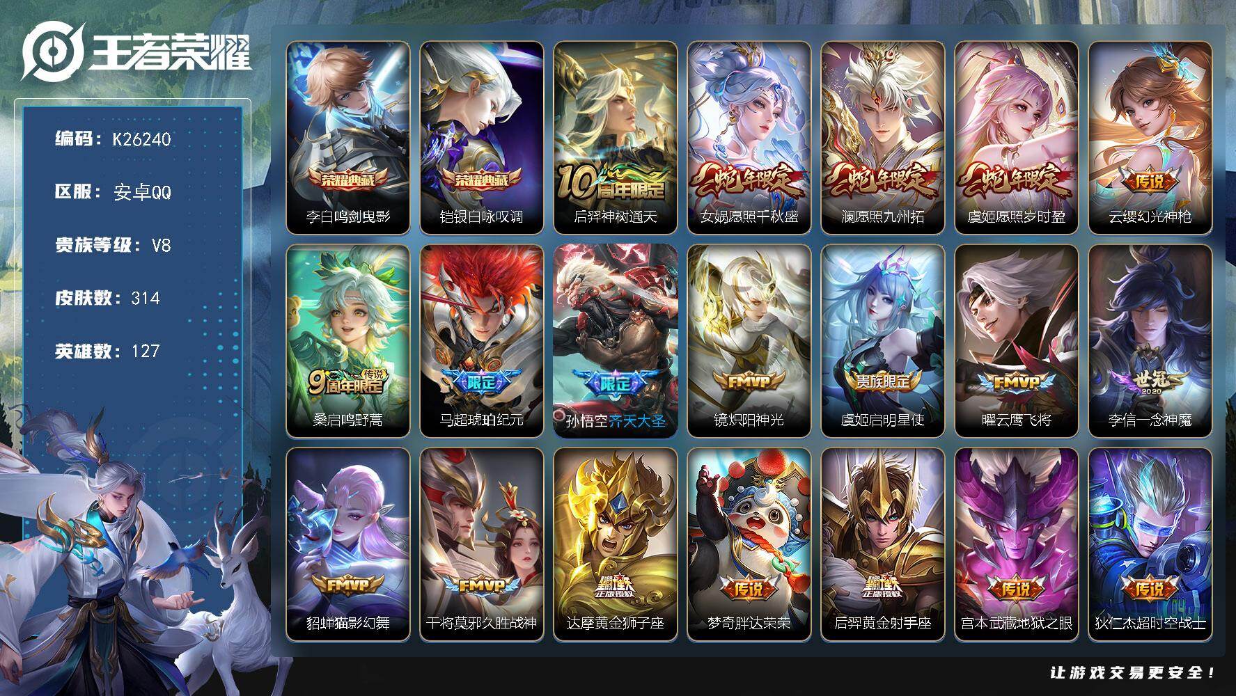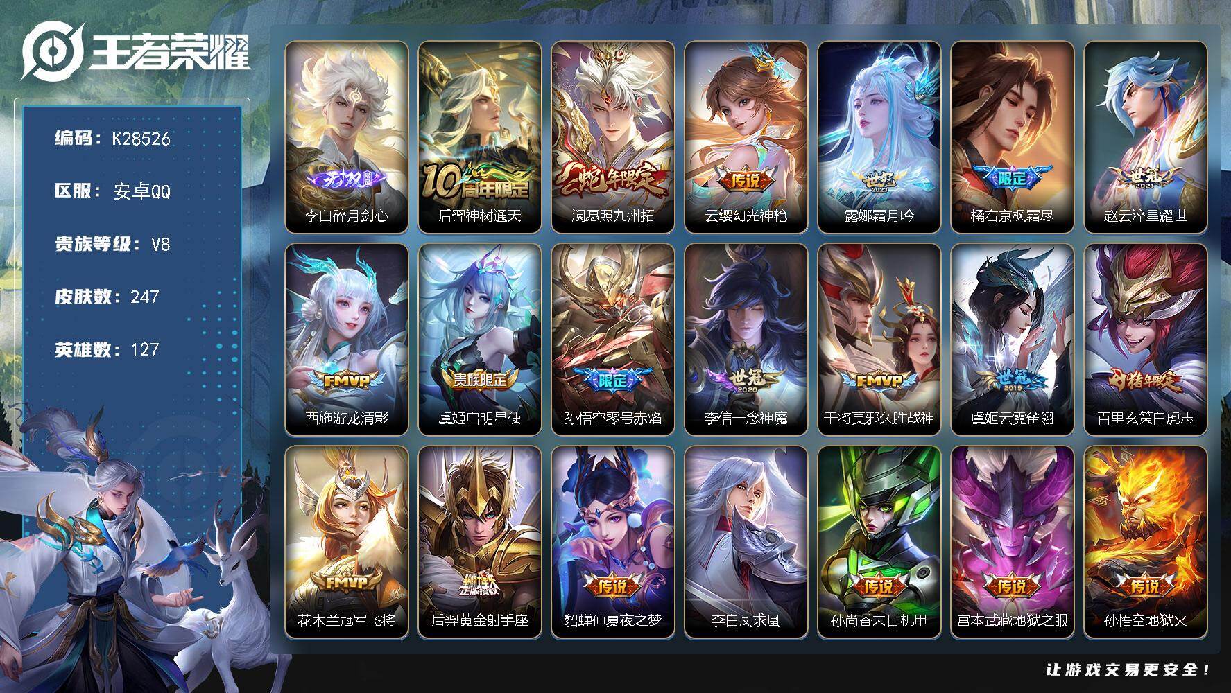 安卓Q-V8-最强王者段位-127英雄-247皮肤-1无双-21传说-60史诗