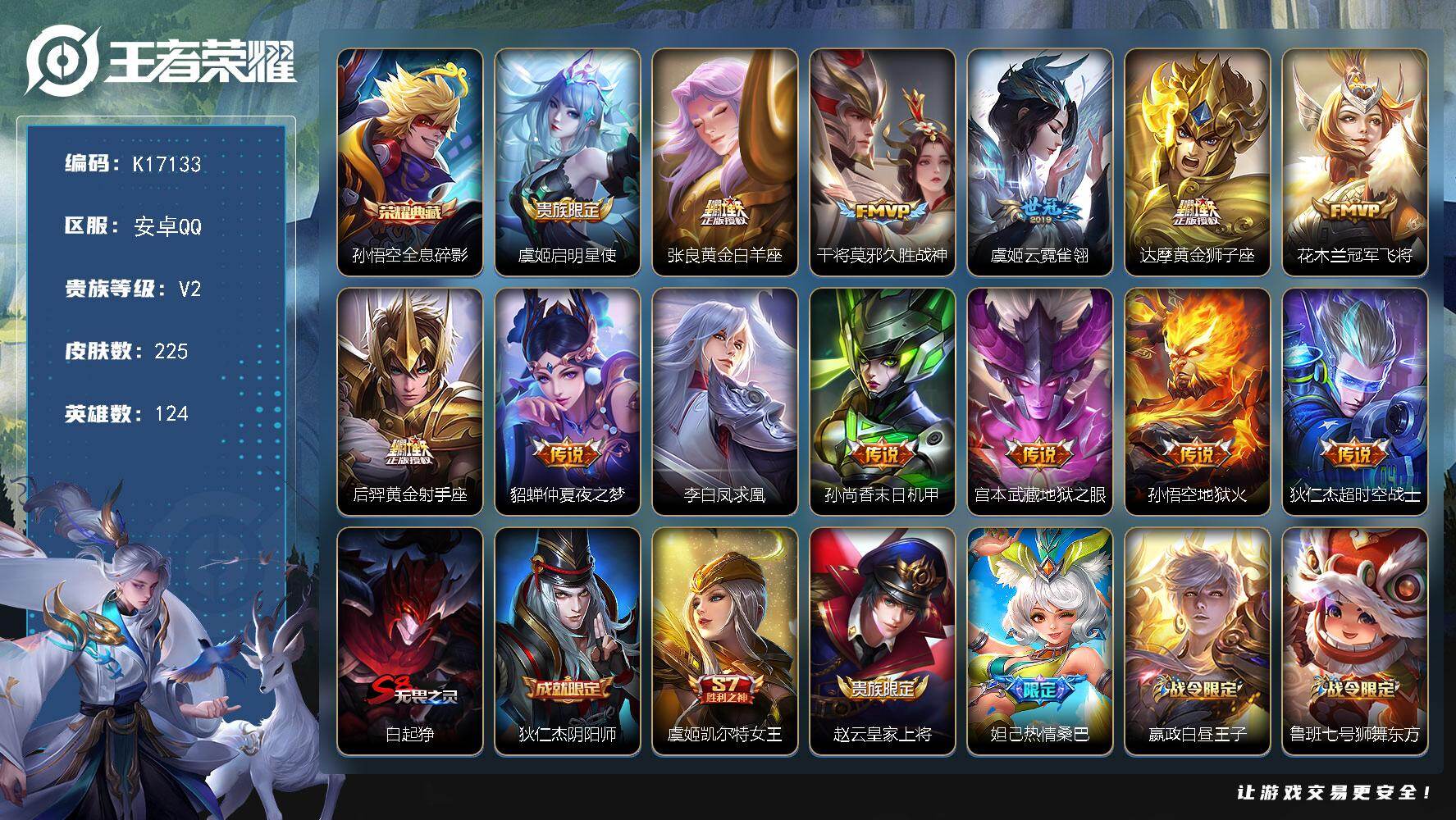 安卓Q-V2-永恒钻石I段位-124英雄-225皮肤-1典藏皮肤-13传说-56
