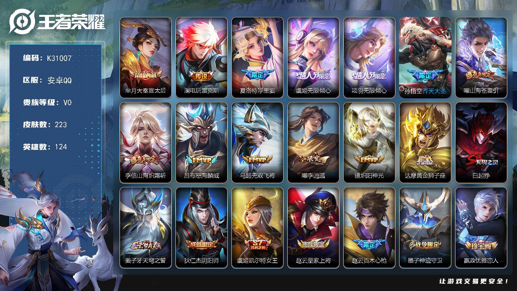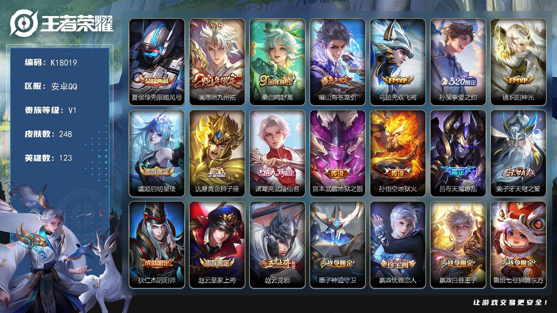安卓Q-V1-尊贵铂金IV段位-123英雄-248皮肤-1典藏皮肤-12传说-6