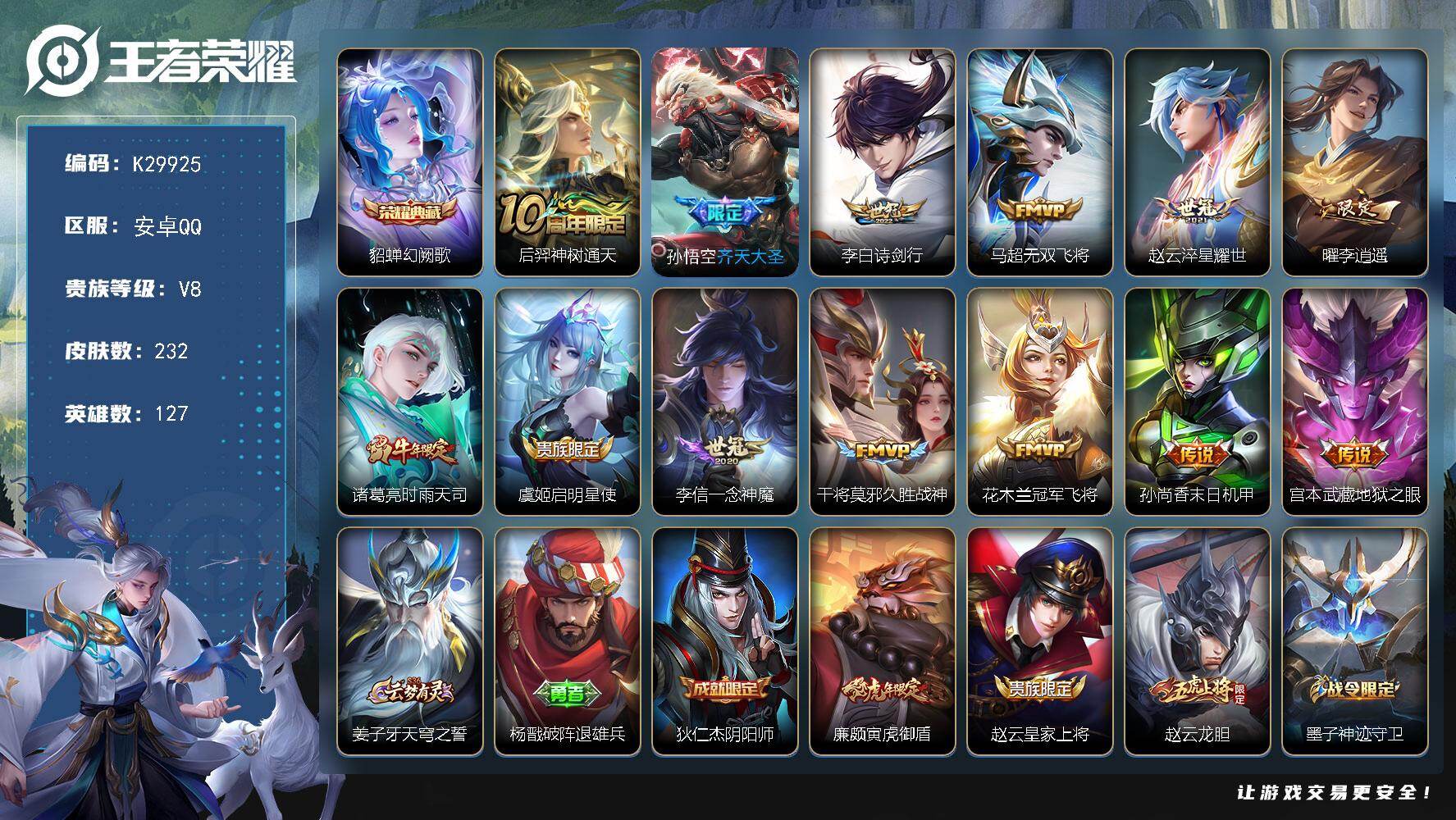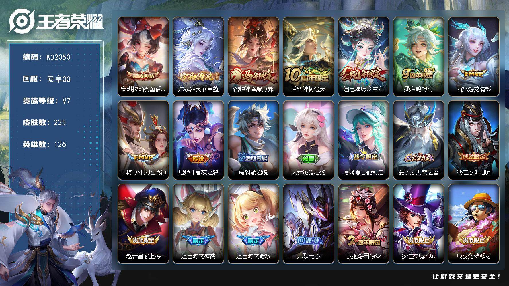 安卓Q-V7-最强王者段位-126英雄-235皮肤-1典藏皮肤-1珍品传说-7传