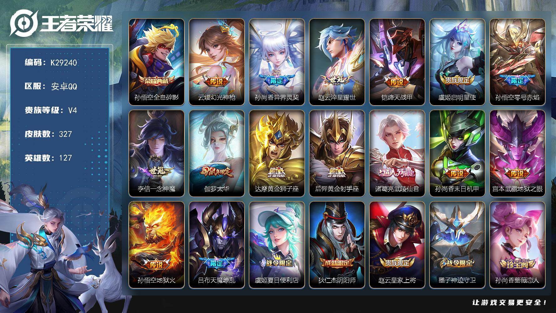安卓Q-V4-至尊星耀V段位-127英雄-327皮肤-1典藏皮肤-15传说-97