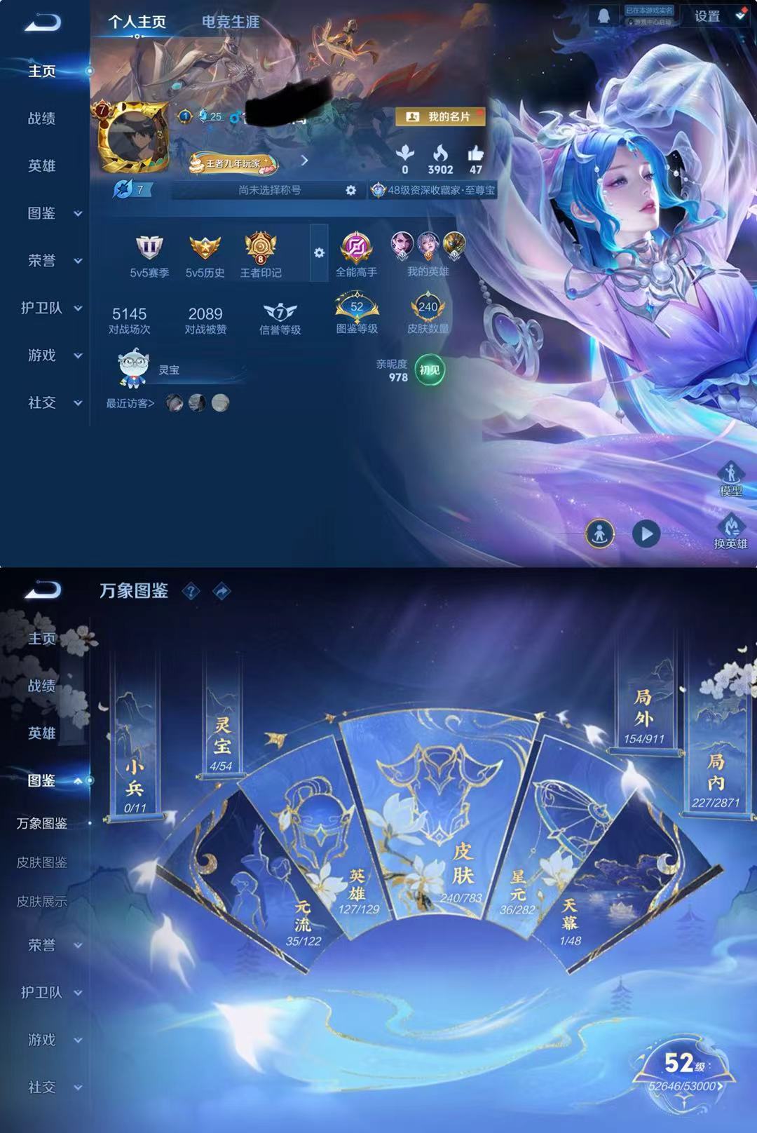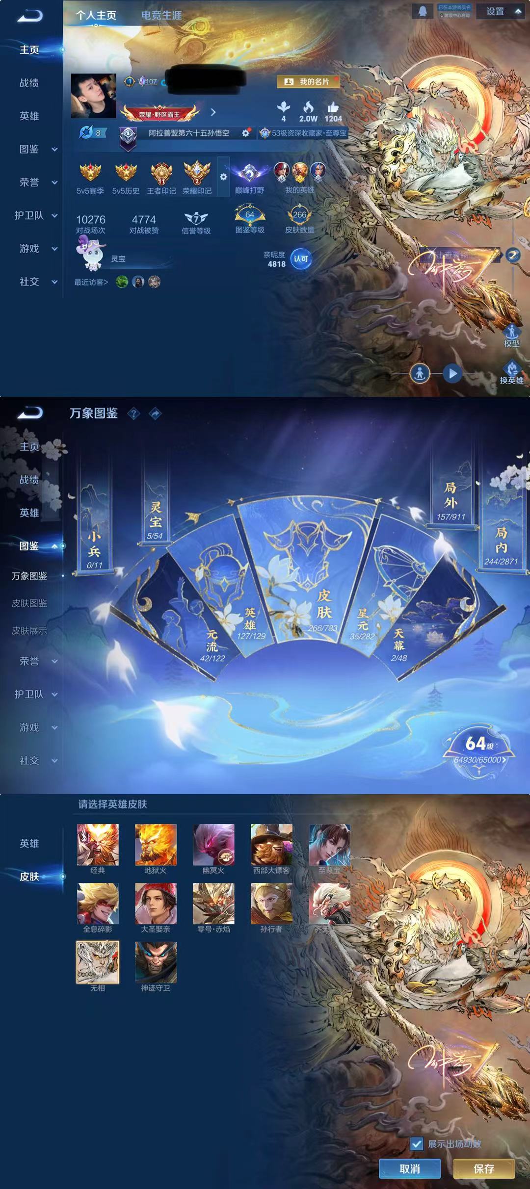 V8-最强王者段位-127英雄-308皮肤-1典藏皮肤-1无双-27传说-89史诗