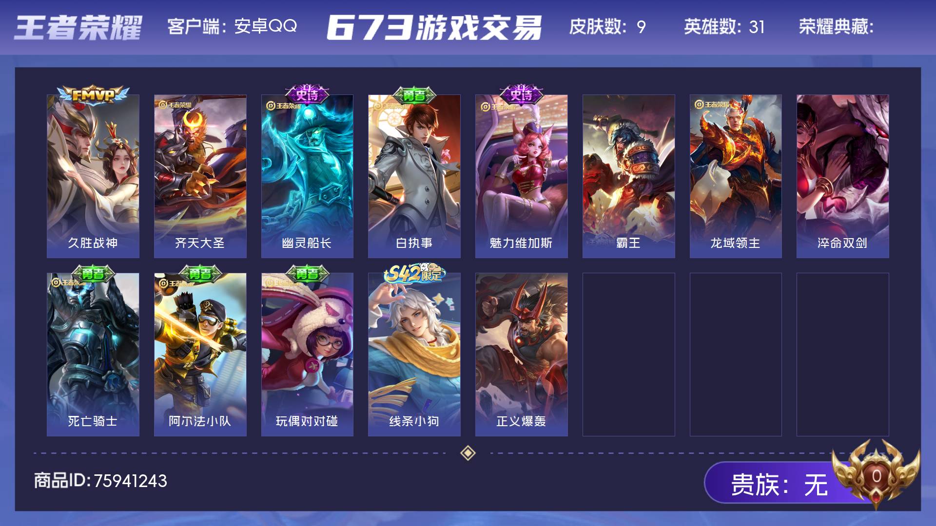 可二次 贵族9贵族积分132217-290皮2典藏