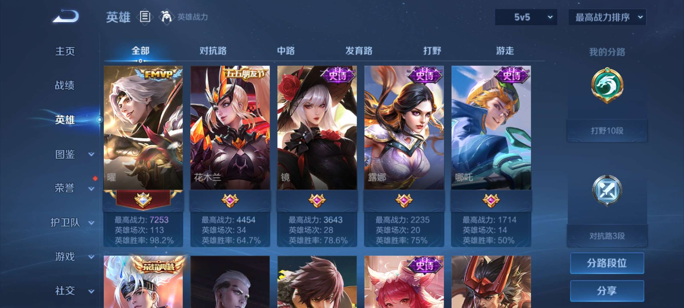 V7 1典藏 1无双 10传说 2星传说 10按键皮肤 打野