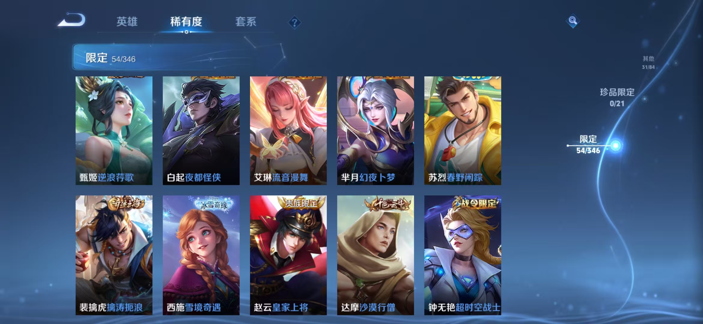 205皮肤1水晶5传说 -126英雄-205皮肤
