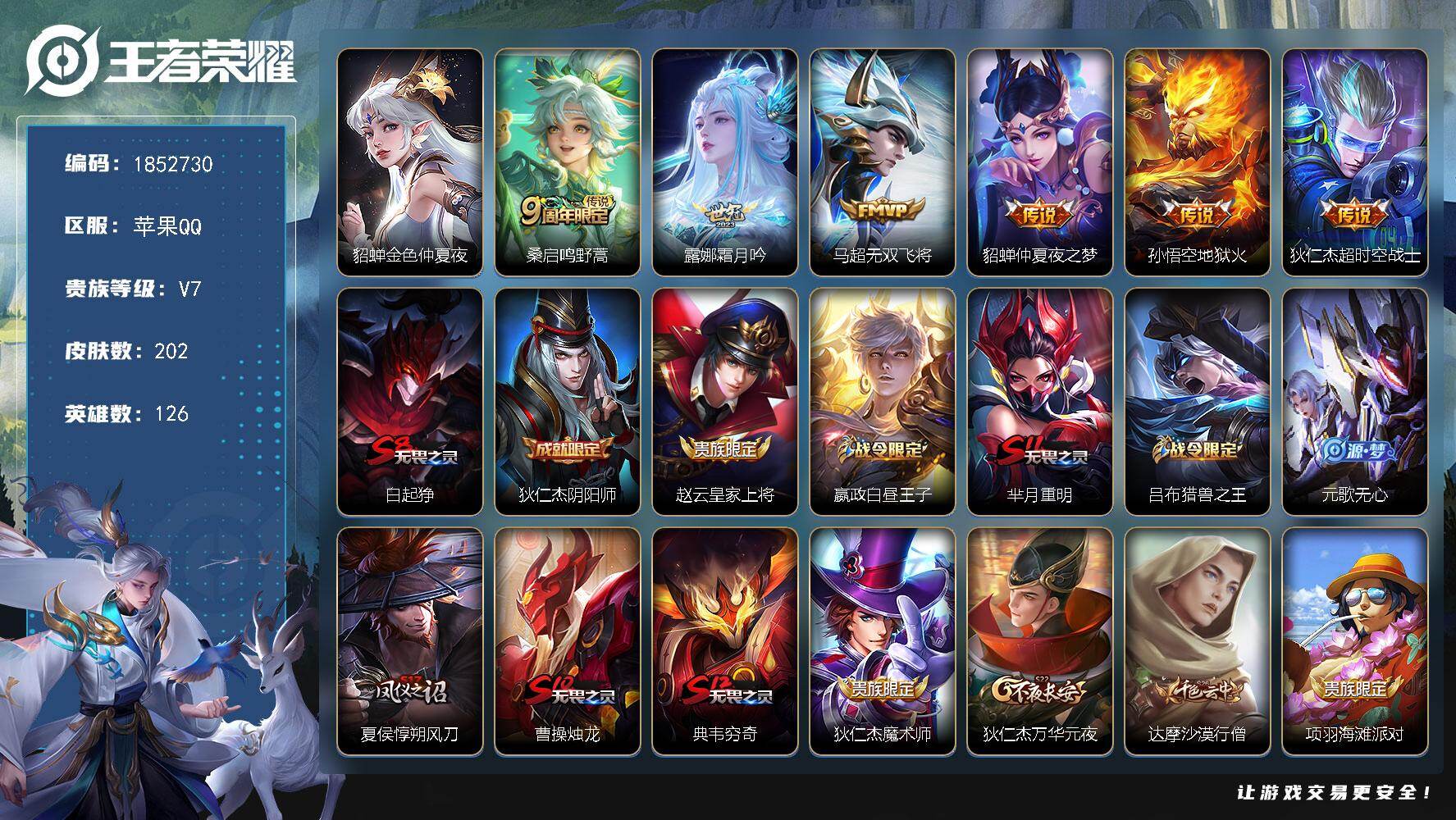 【16775639】苹果Q-V9-最强王者段位-128英雄-386皮肤-3典藏