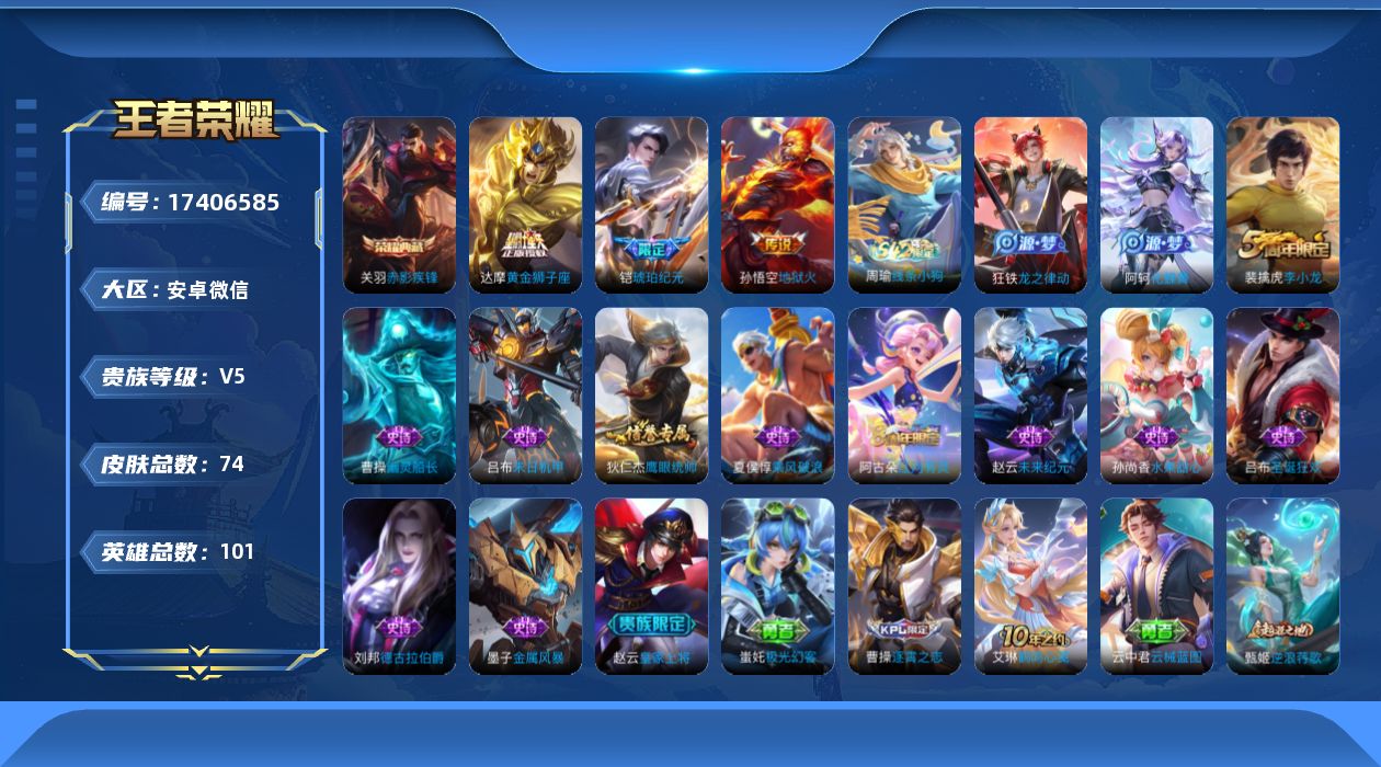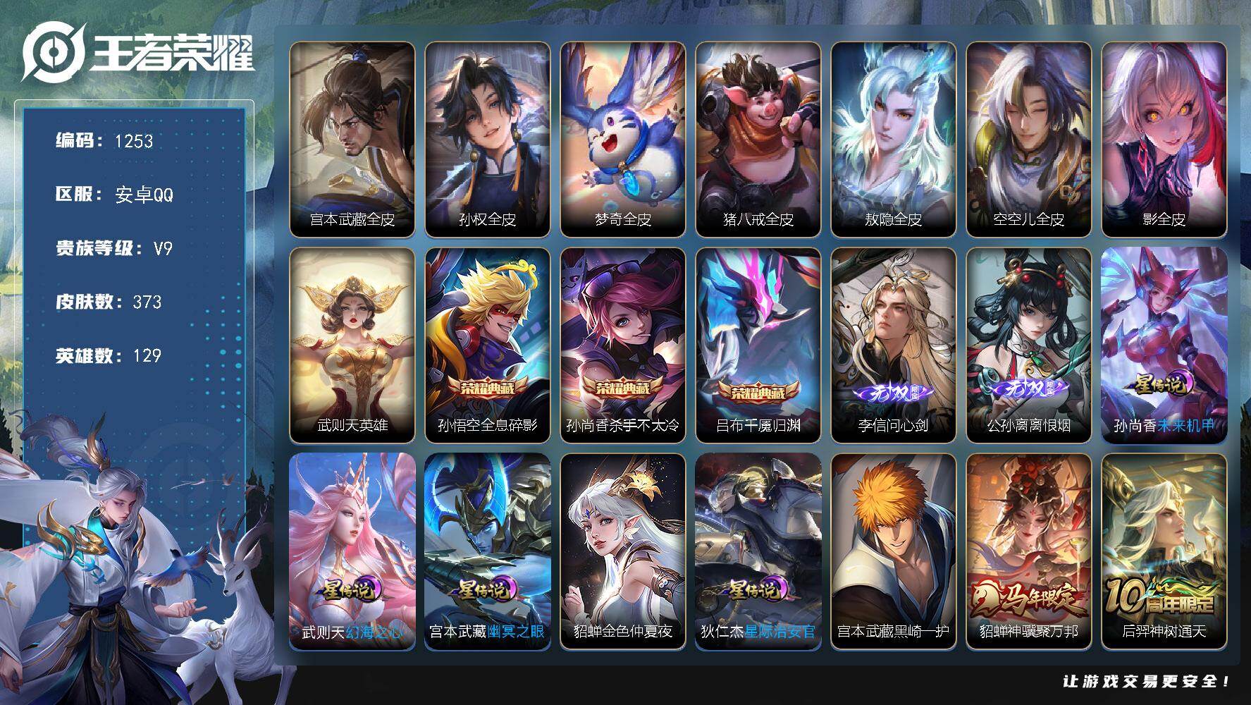 安卓Q-V9-129英雄-373皮肤-3典藏皮肤-1典藏英雄-2无双-1珍品传