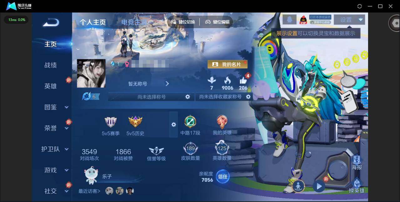 实名: 可修改 贵族等级: V8 英雄数: 125 皮肤数: 189 荣耀水晶
