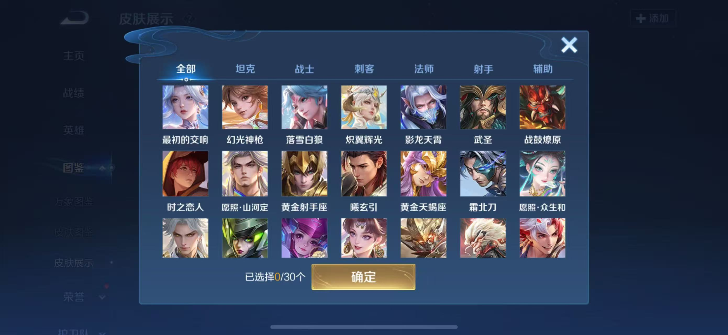 V8 皮肤270 英雄129 至尊星耀 荣耀典藏1 星传说2 传说20 其他皮肤255