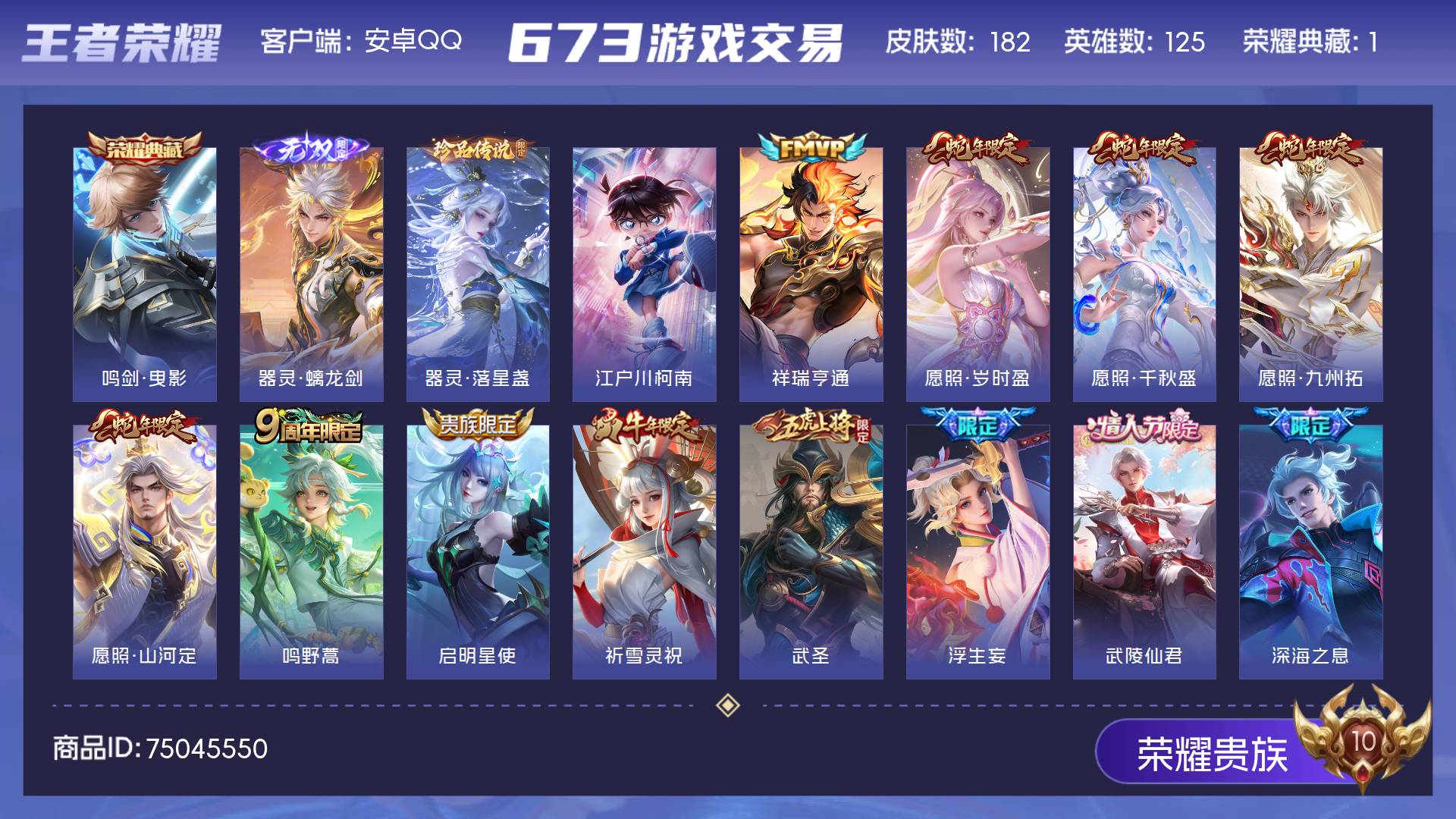 皮肤182 英雄125 永恒钻石 荣耀典藏1 无双皮肤1 珍品传说2 传说22 其他皮肤67-GT51 无双-曜 神威-马超 极品野王号 2太阳热门:1典藏1无双2珍品22传说 安卓Q-V8-无双王者-124英雄