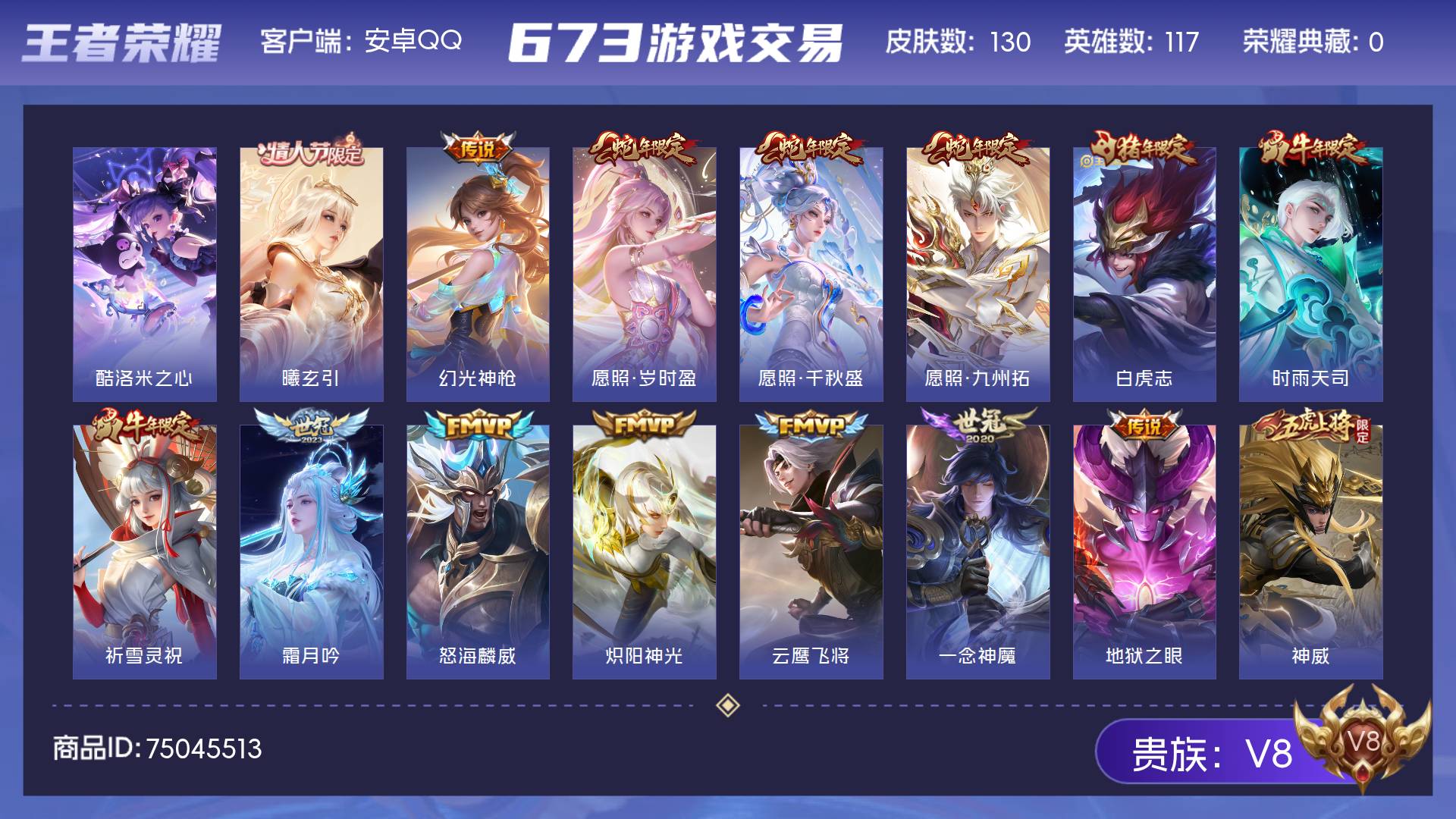 皮肤130 英雄117 无双王者 珍品传说1 传说14 其他皮肤43-皮肤130 英雄117 无双王者