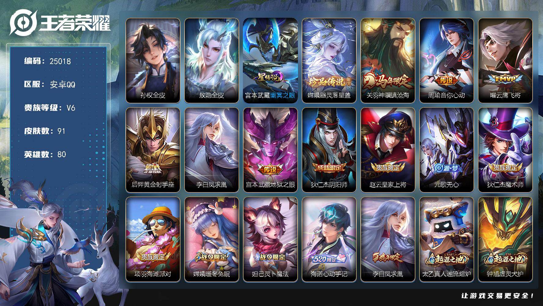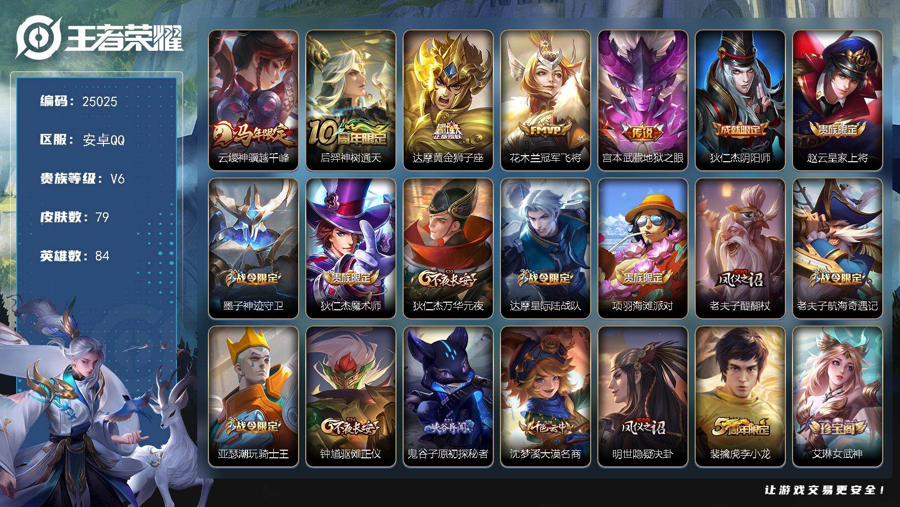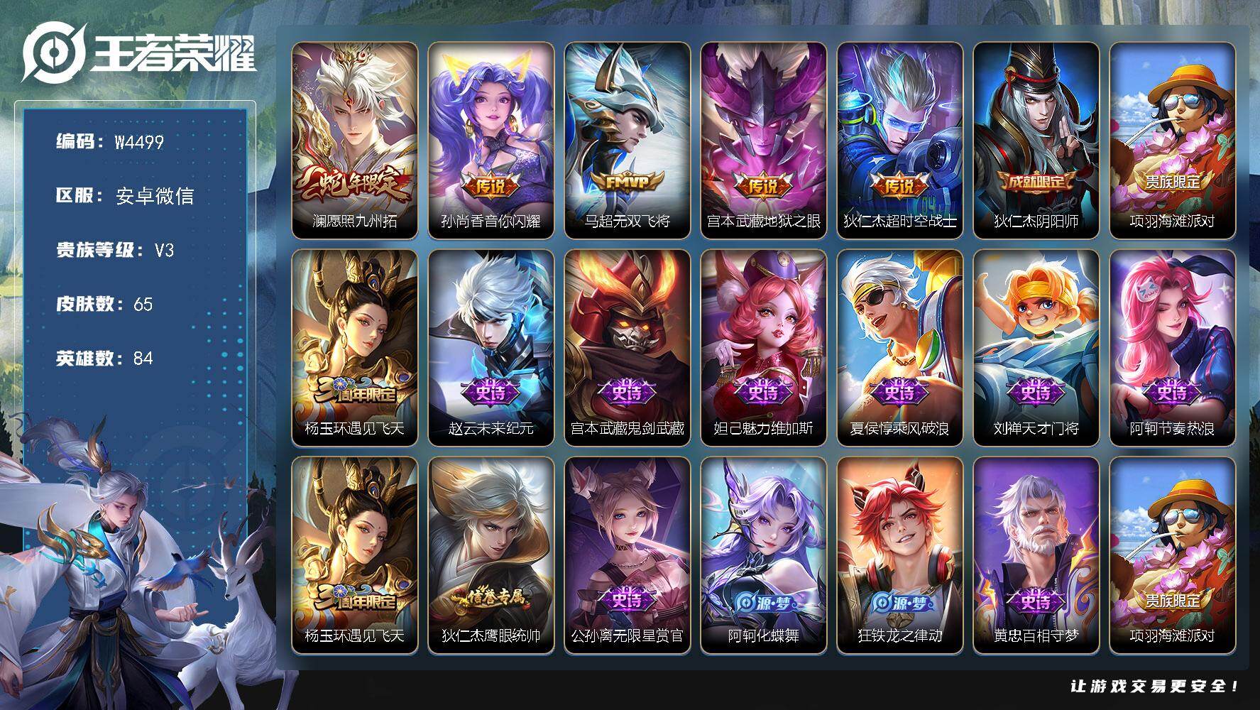 【W4499】社交限制-安卓微信-无二次-贵4-84英雄-65皮肤-5传说-1