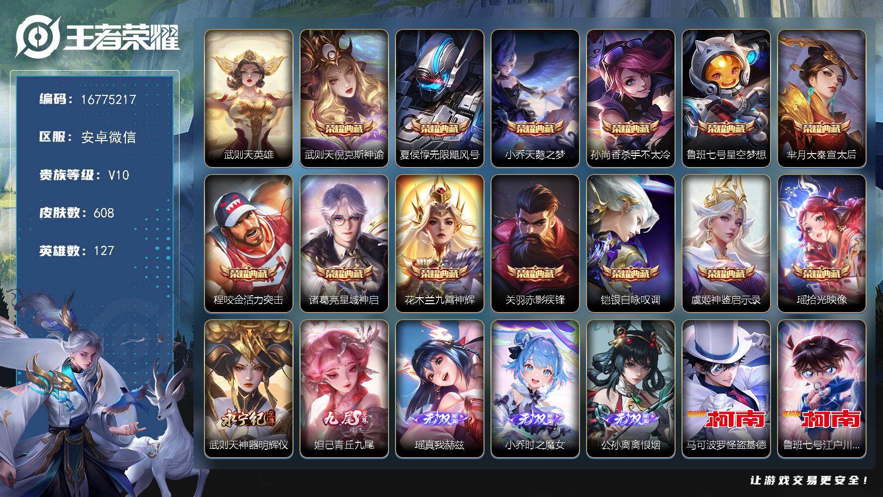 安卓Q-V10-永恒钻石III段位-129英雄-542皮肤-12典藏皮肤-1典藏