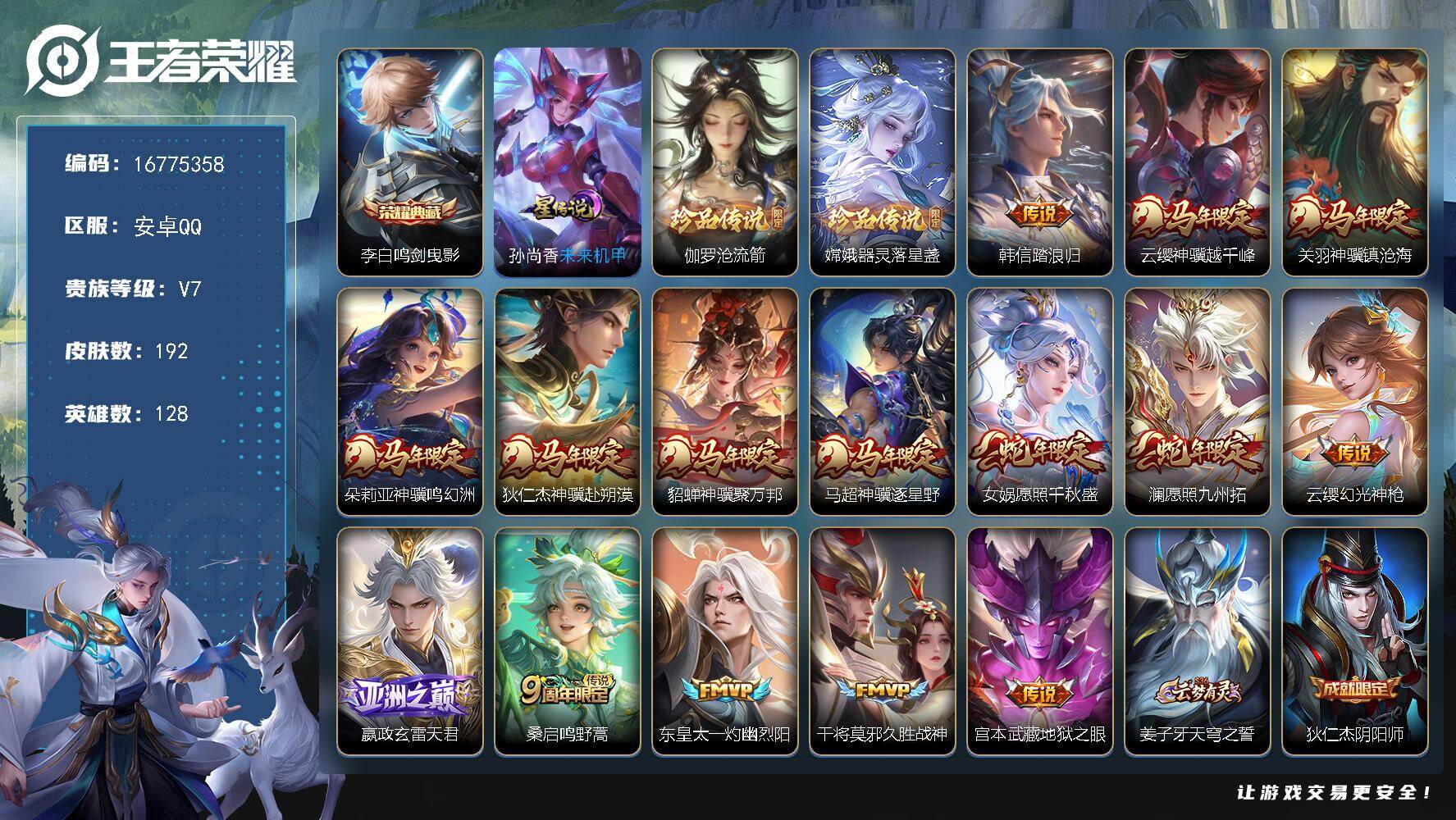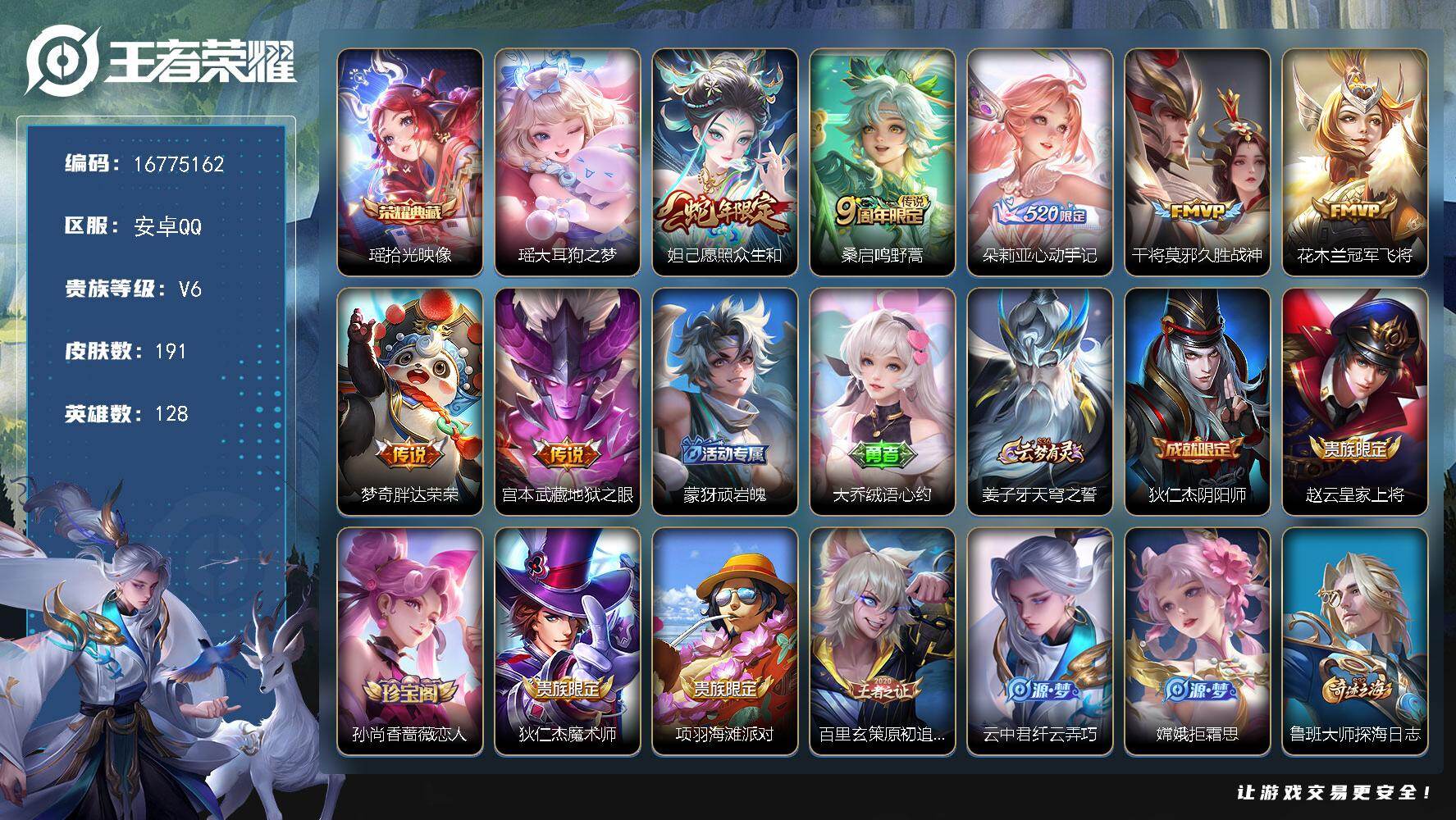 安卓Q-V6-至尊星耀I段位-128英雄-191皮肤-1典藏皮肤-1珍品传说-7