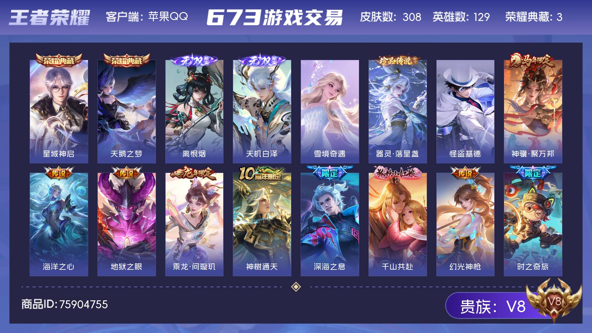 V8 皮肤308 英雄129 无双王者 荣耀典藏3 无双皮肤3 珍品传说2 传说20 其他皮肤288