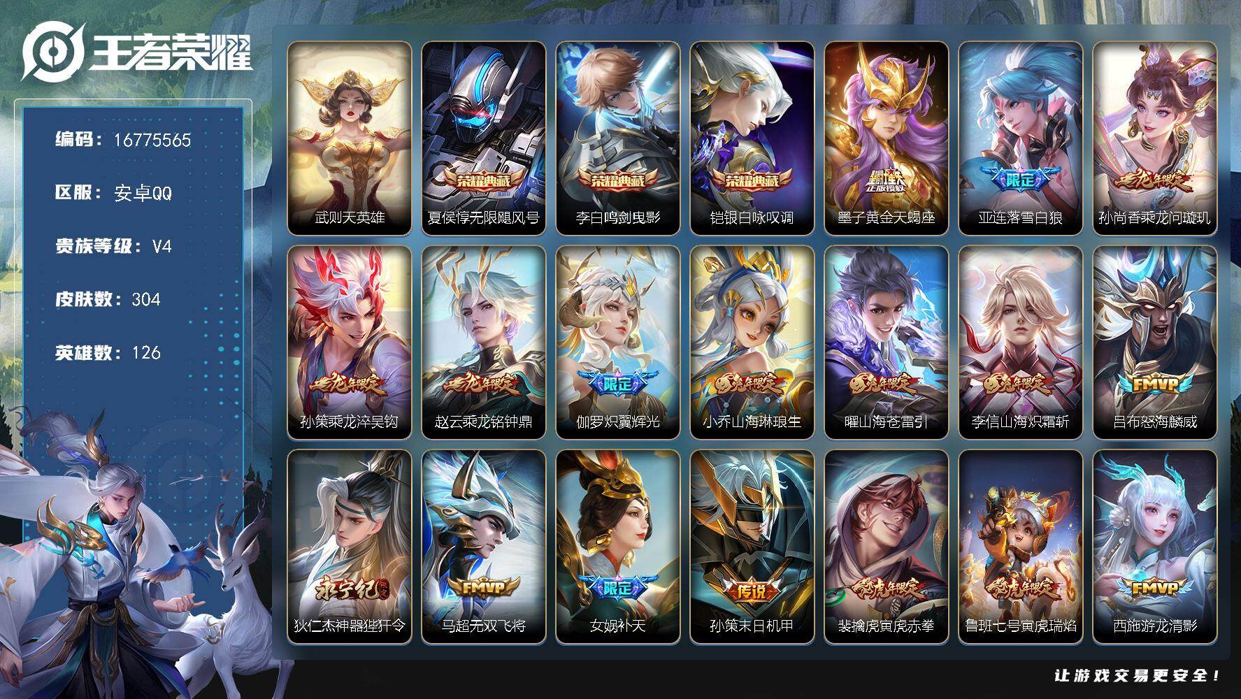 【16775565】安卓Q-V4-永恒钻石III段位-126英雄-304皮肤-