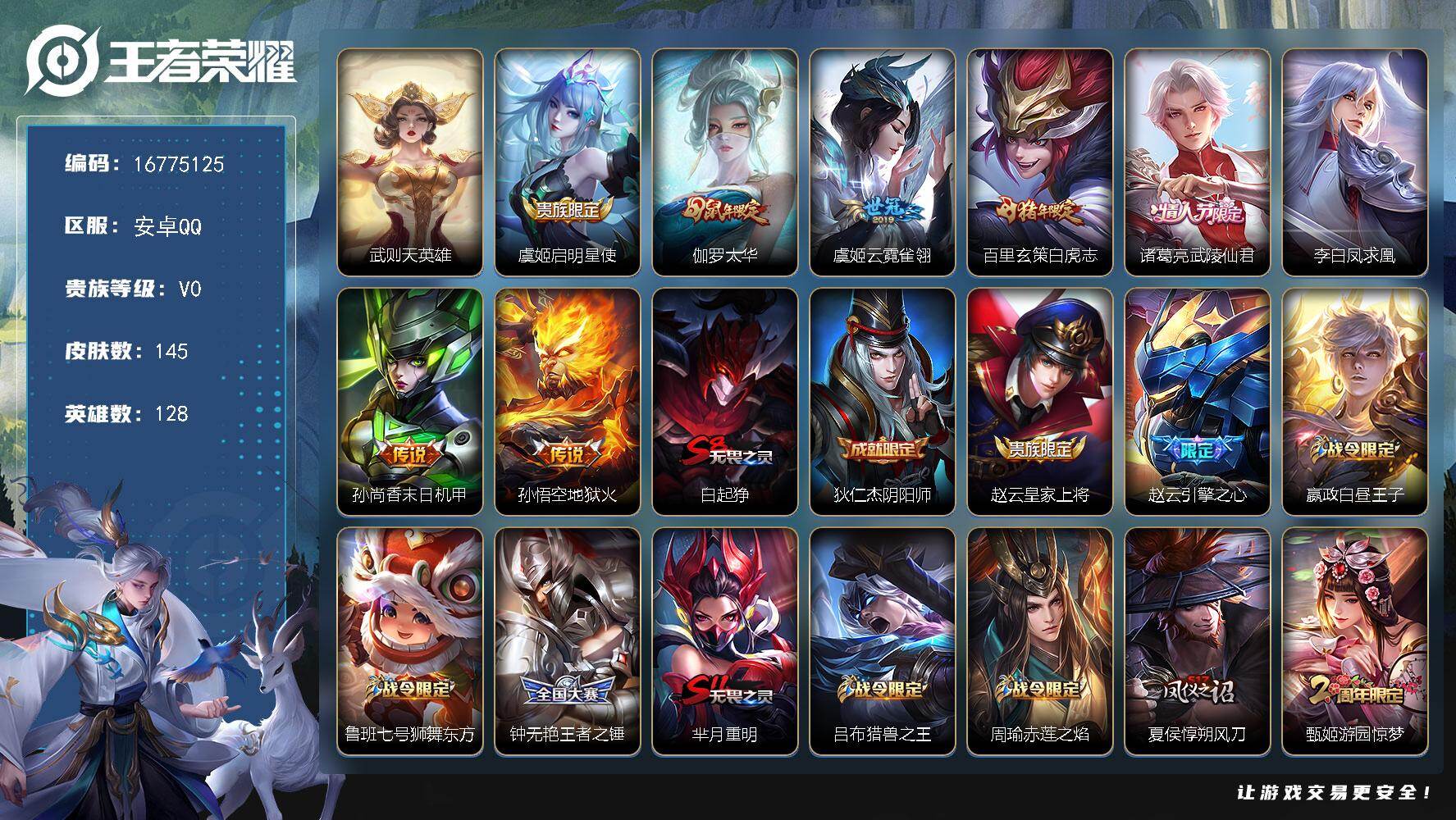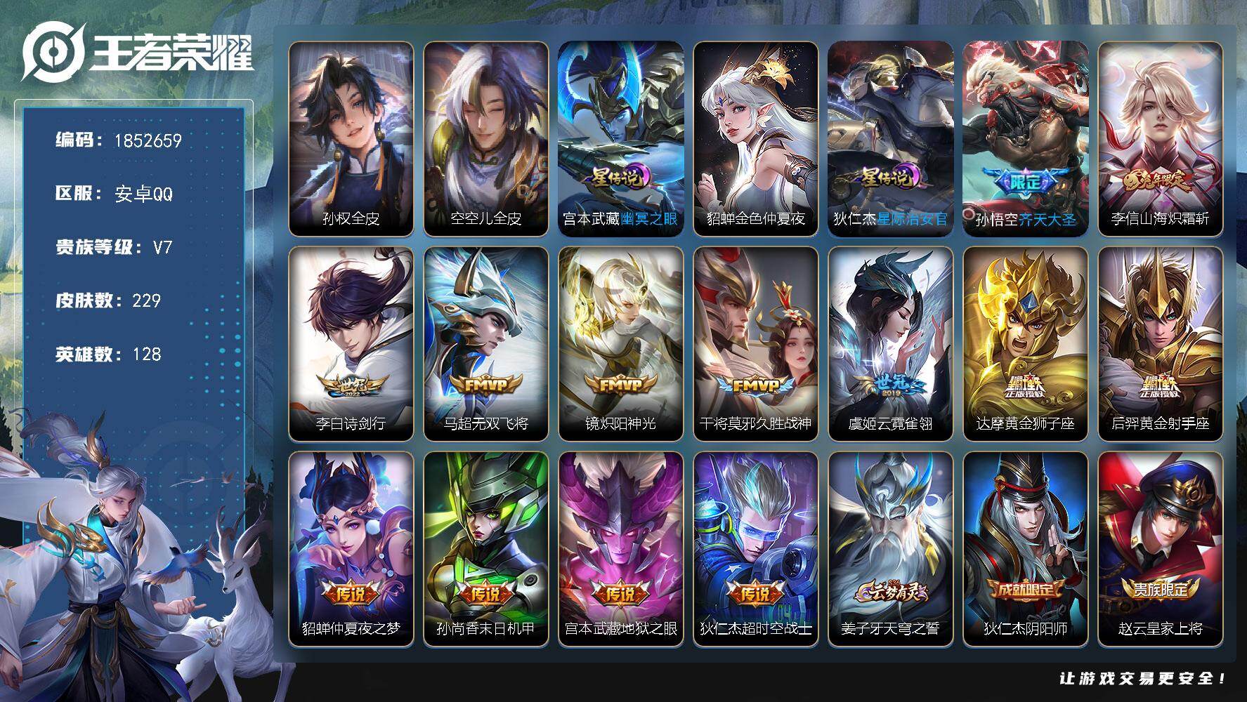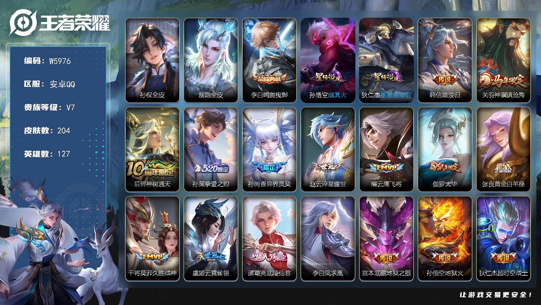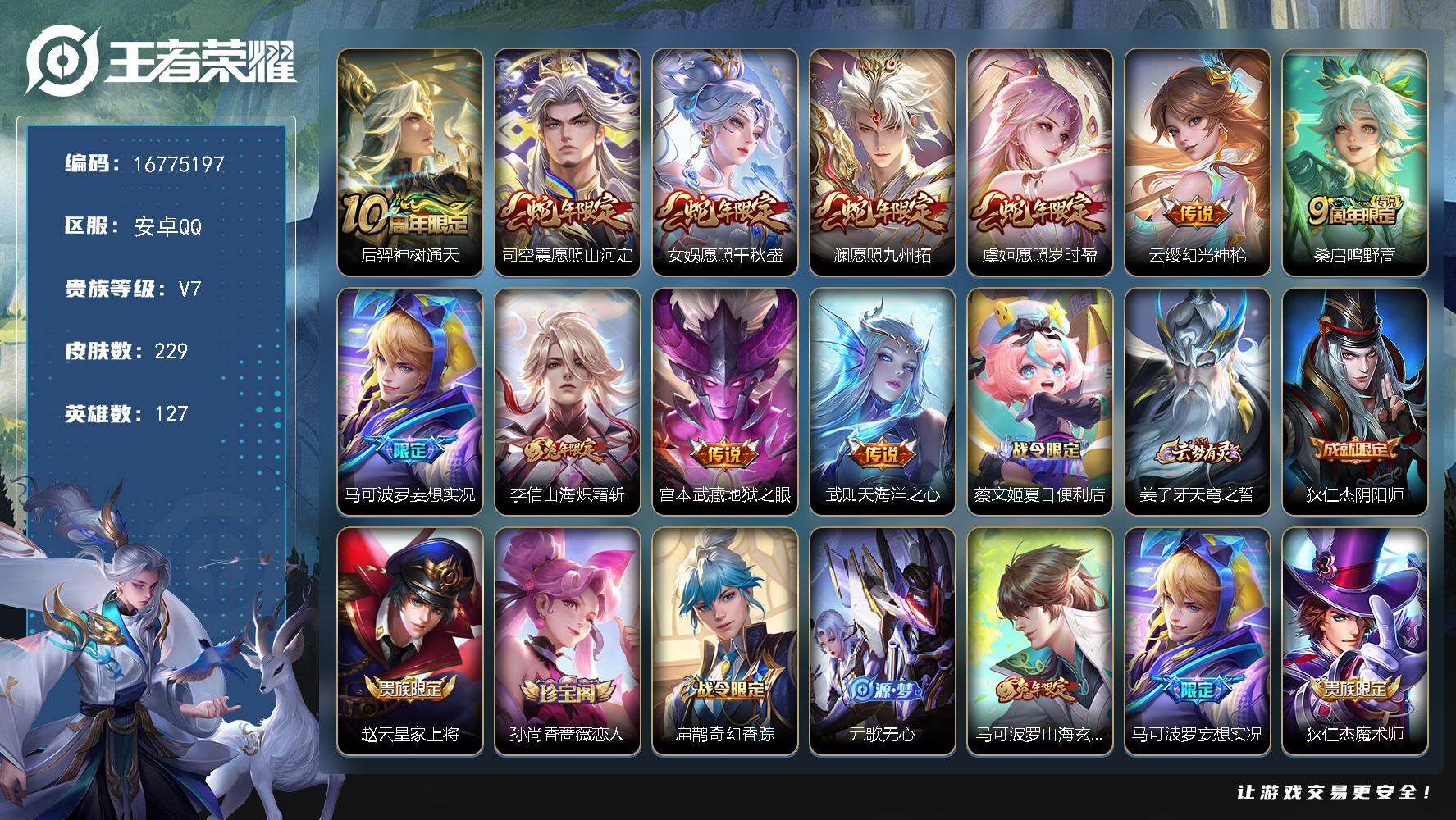 安卓Q-V7-最强王者段位-127英雄-229皮肤-11传说-72史诗【英雄全