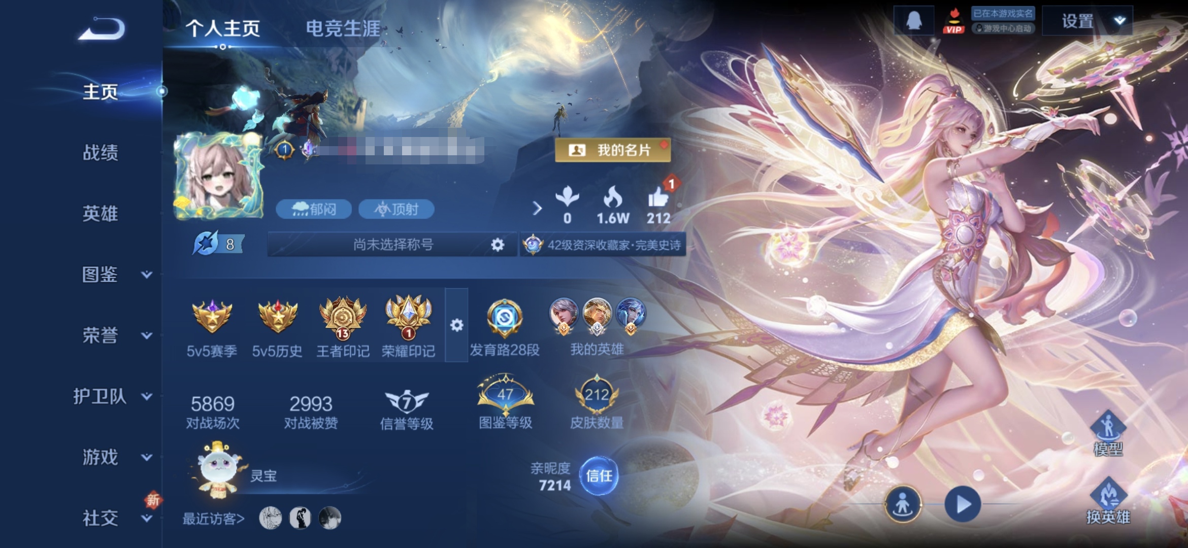 贵族等级: V5 英雄数: 103 皮肤数: 87 传说皮: 炽阳神光,澜逐花