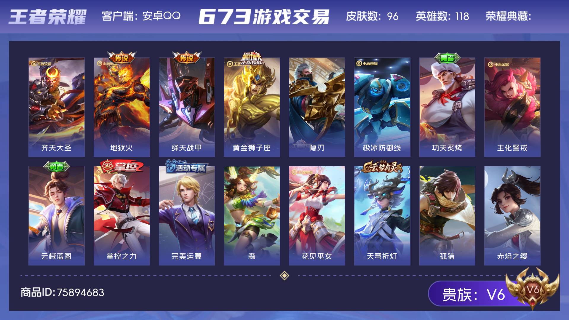V6 皮肤96 英雄118 荣耀黄金 传说4 其他皮肤99