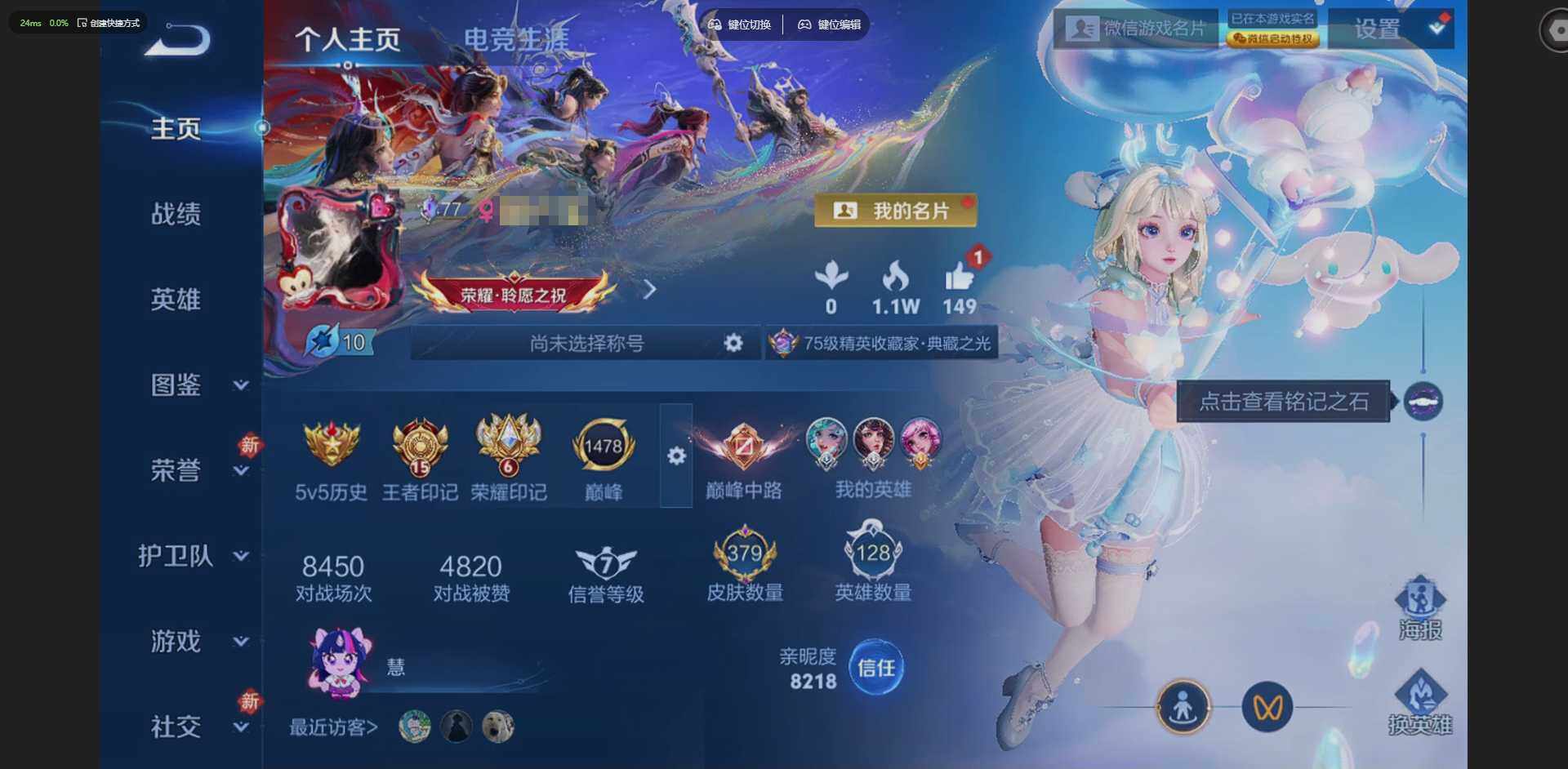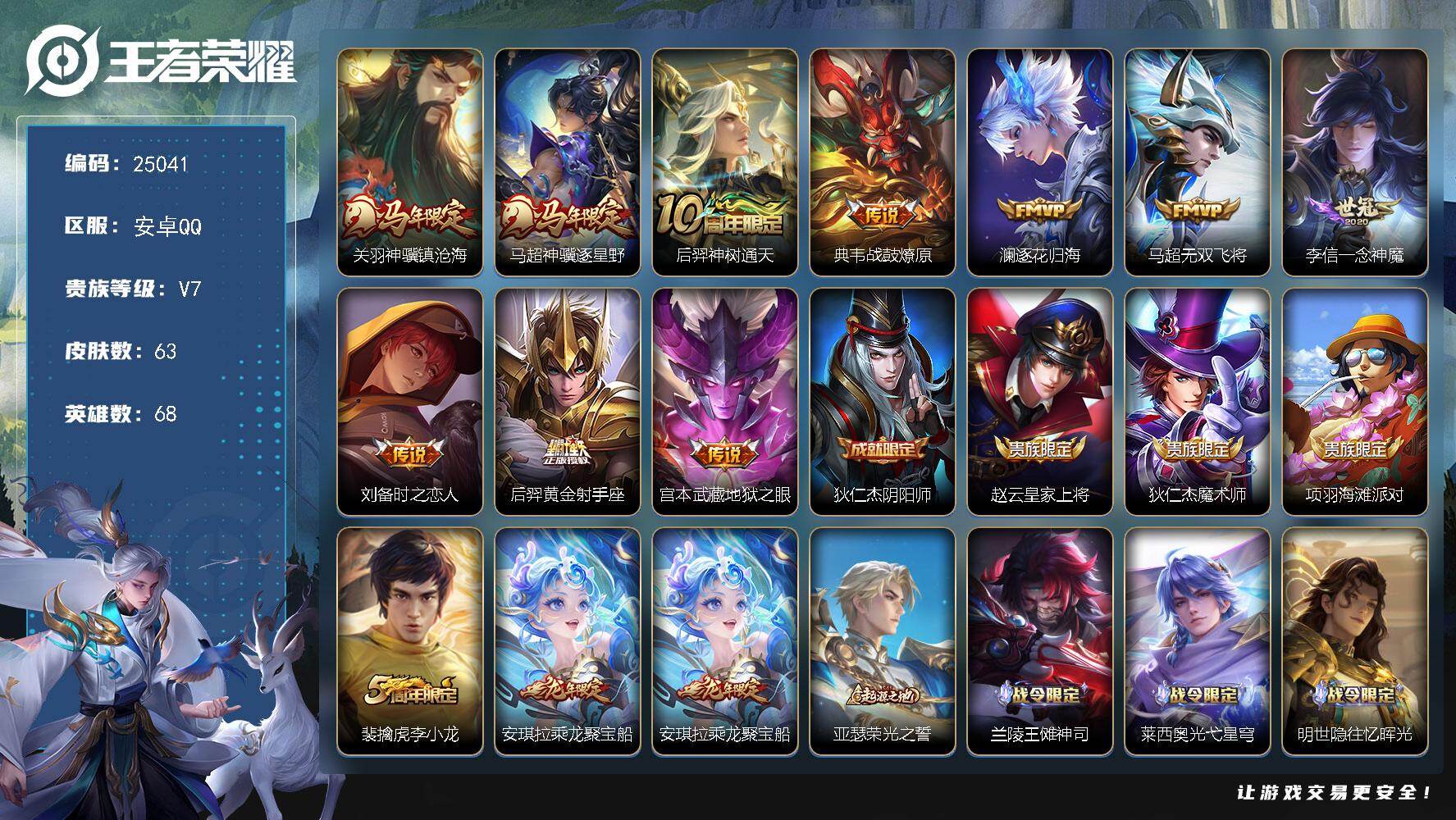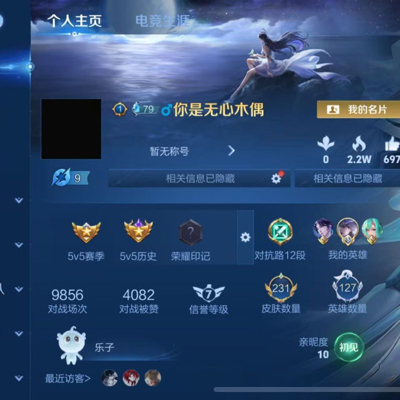 贵族等级: V7 英雄数: 126 皮肤数: 145