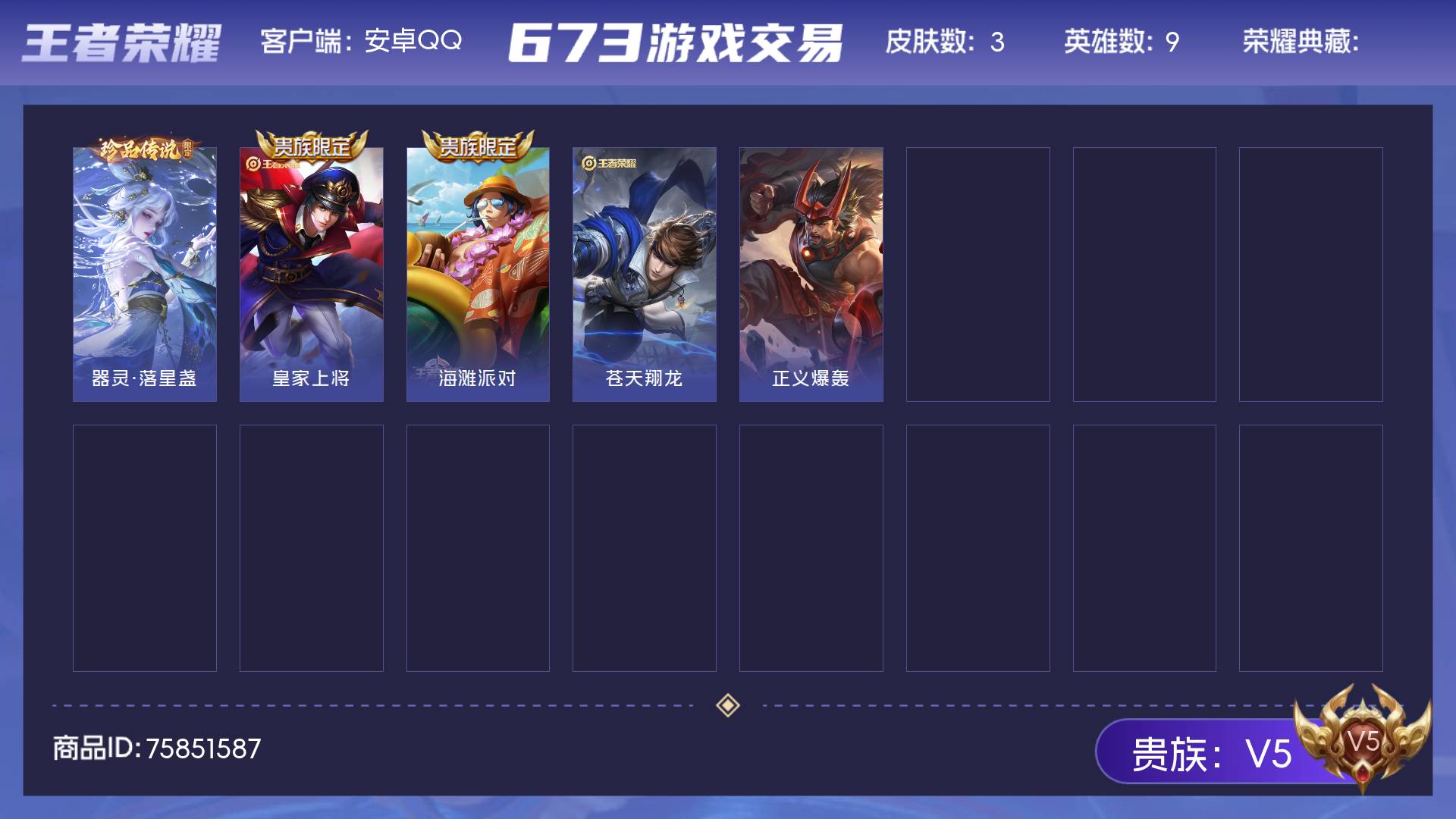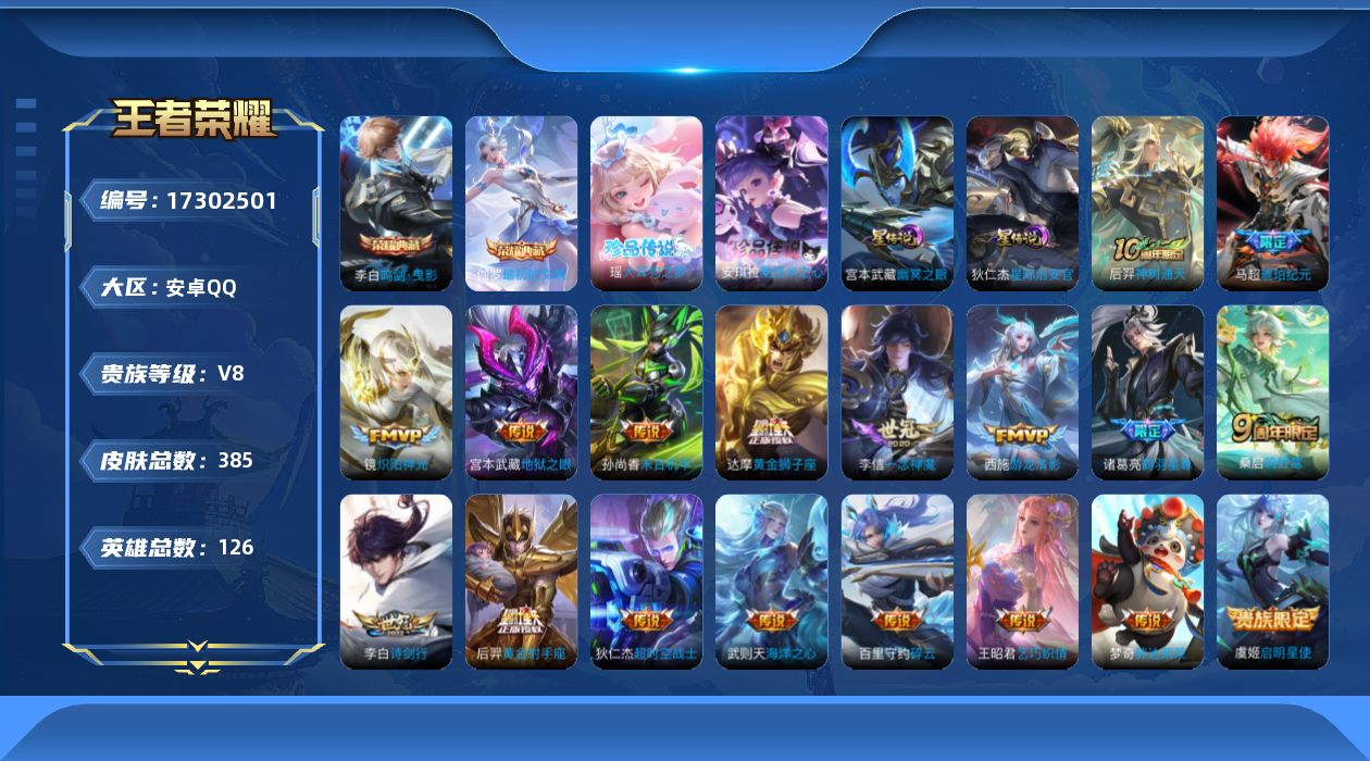 V9-最强王者段位-126英雄-393皮肤-6典藏皮肤-1珍品传说-3星传说-30传说-123史诗