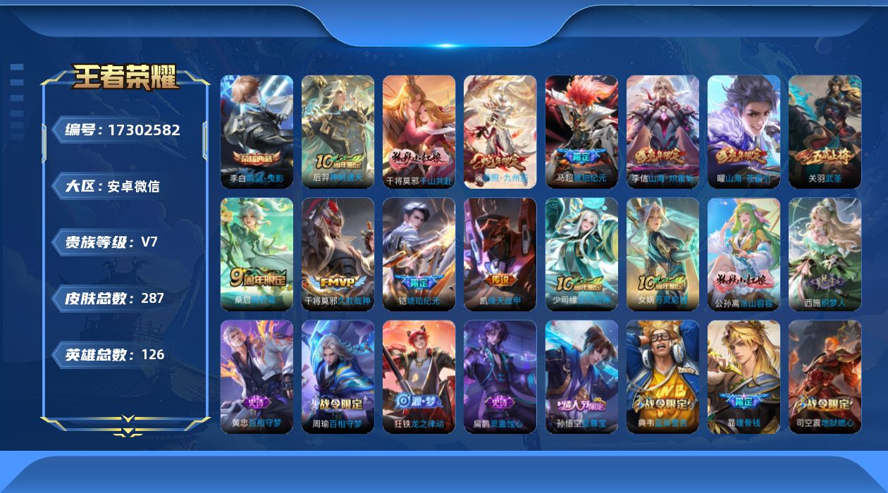 -V7-最强王者段位-126英雄-287皮肤-1典藏
