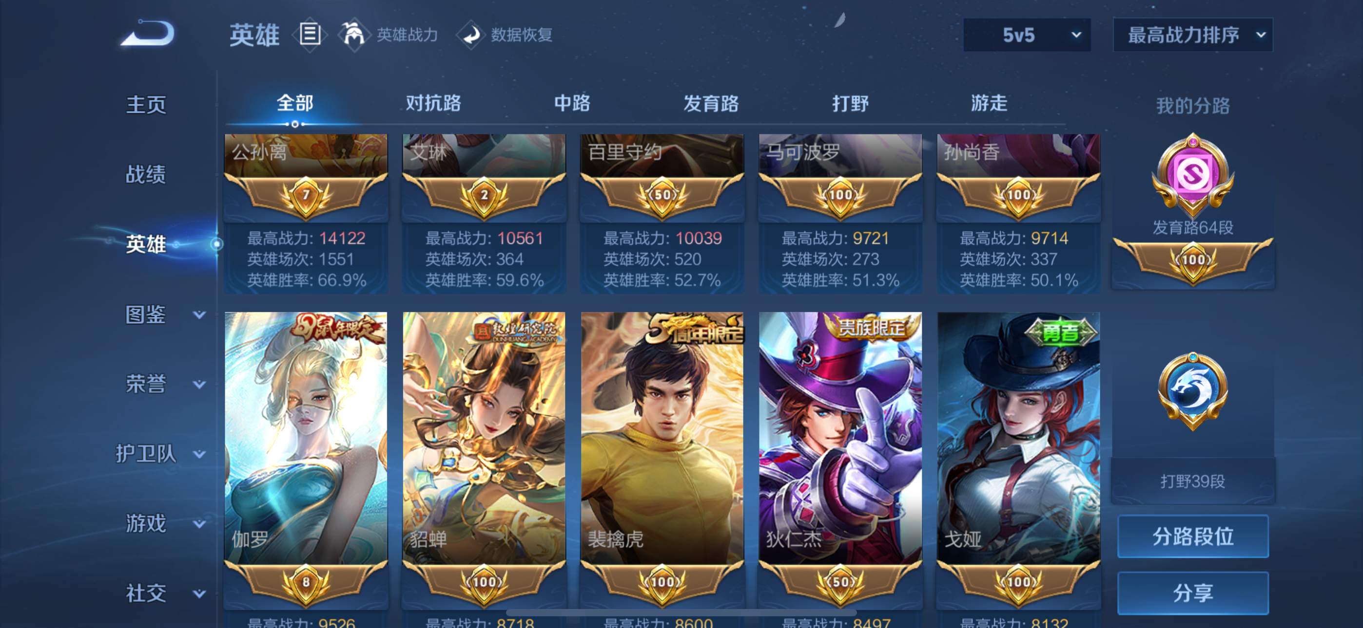 V8-最强王者段位-127英雄-318皮肤-1典藏皮肤-19传说-103史诗