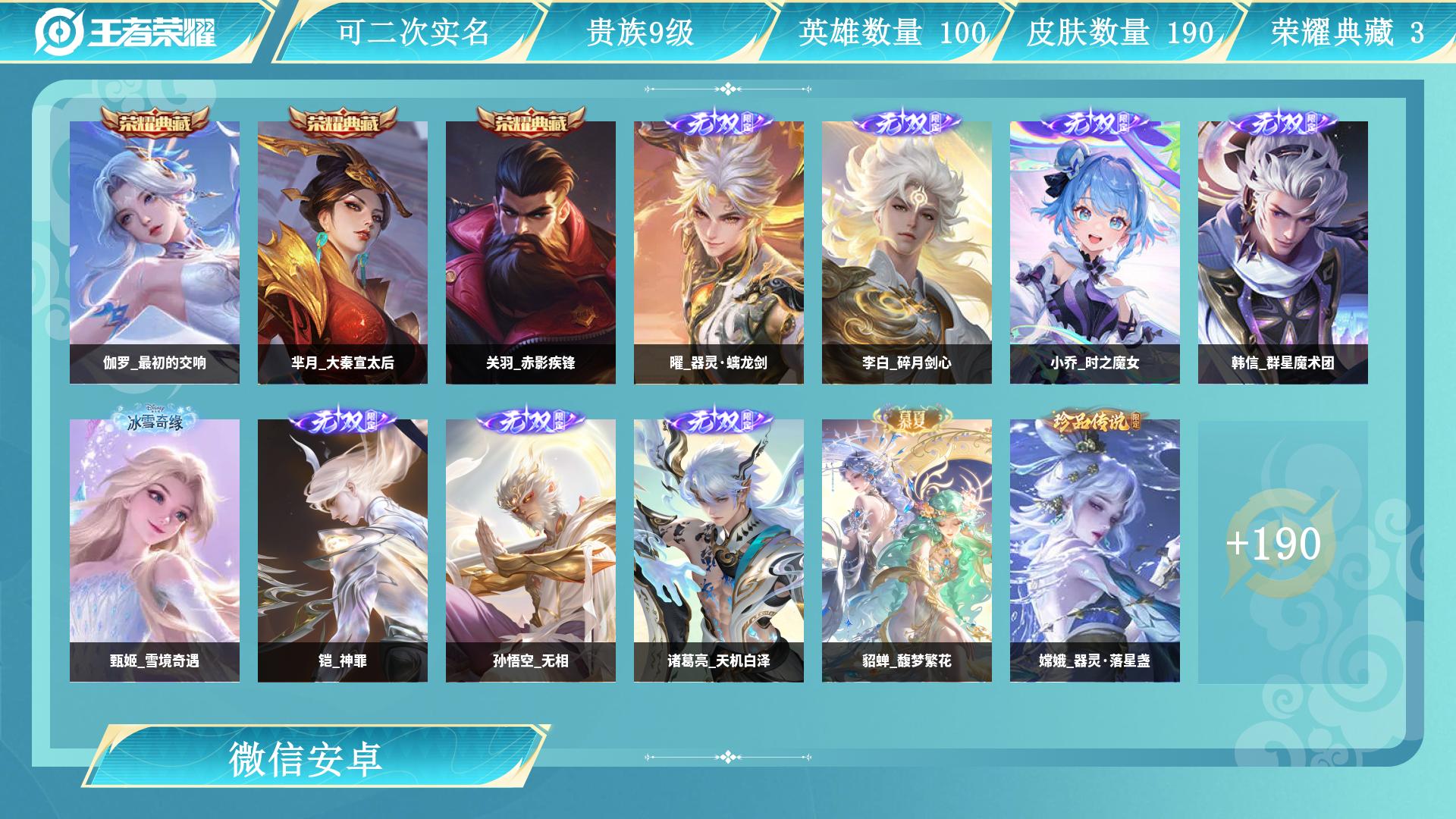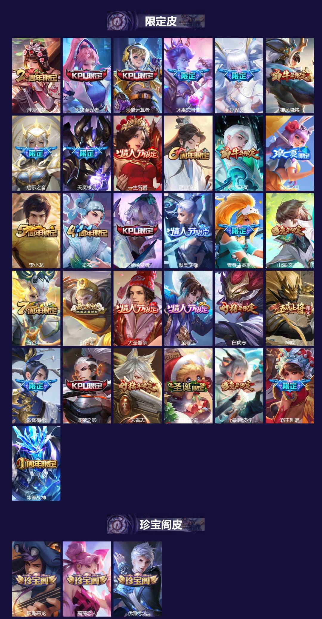 贵族8/皮肤272/典藏1/传说16/史诗74/英雄127/
