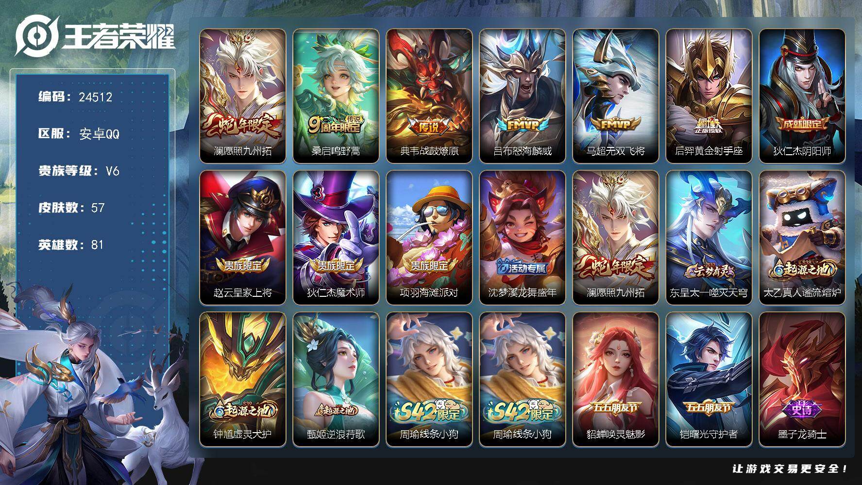 金标亚瑟 宫本幽冥安卓手Q225区309皮2典藏15传说0无双V6
