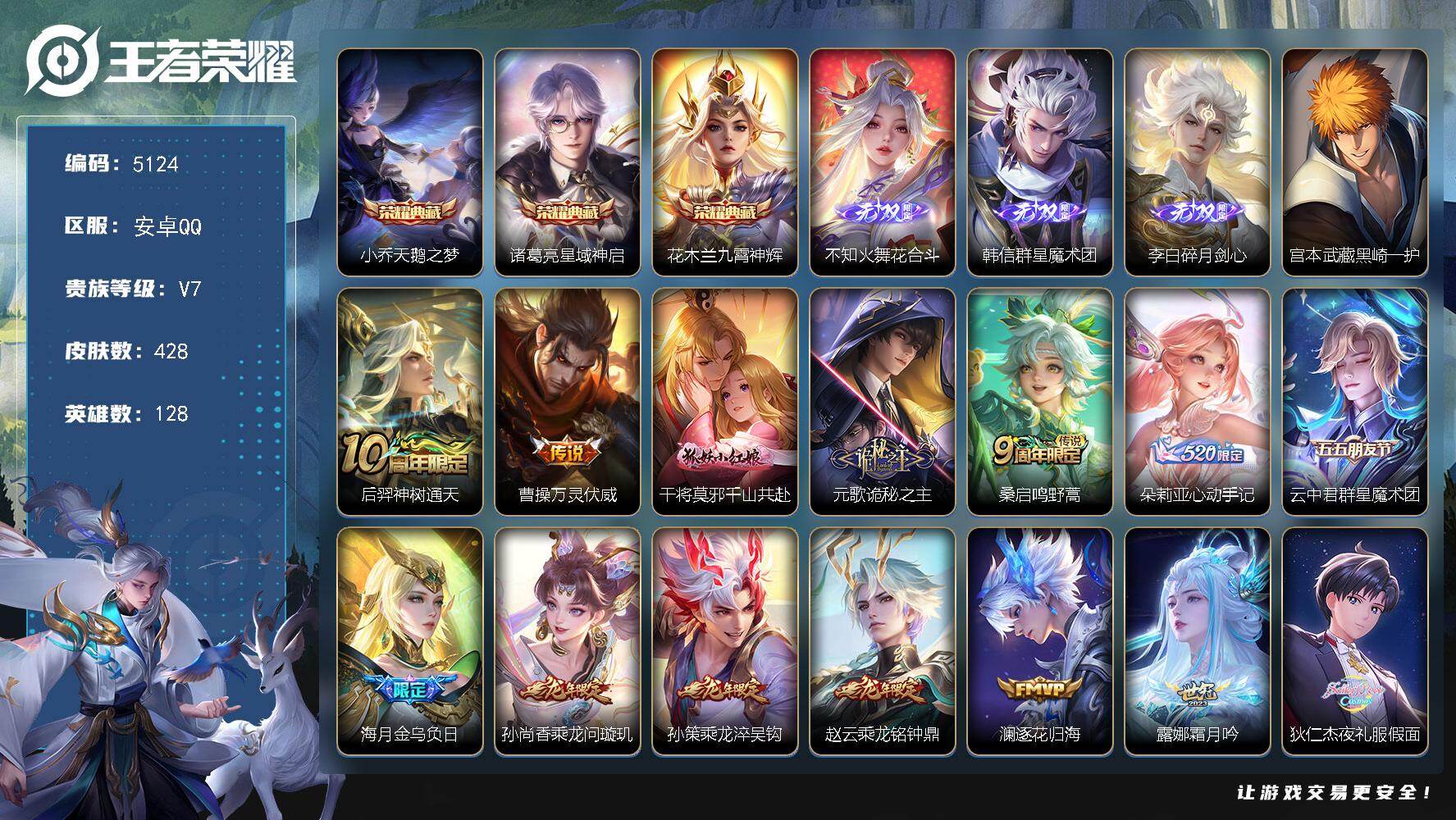 V10 皮肤539 英雄128 最强王者 荣耀典藏4 无双皮肤1 传说72 其他皮肤467