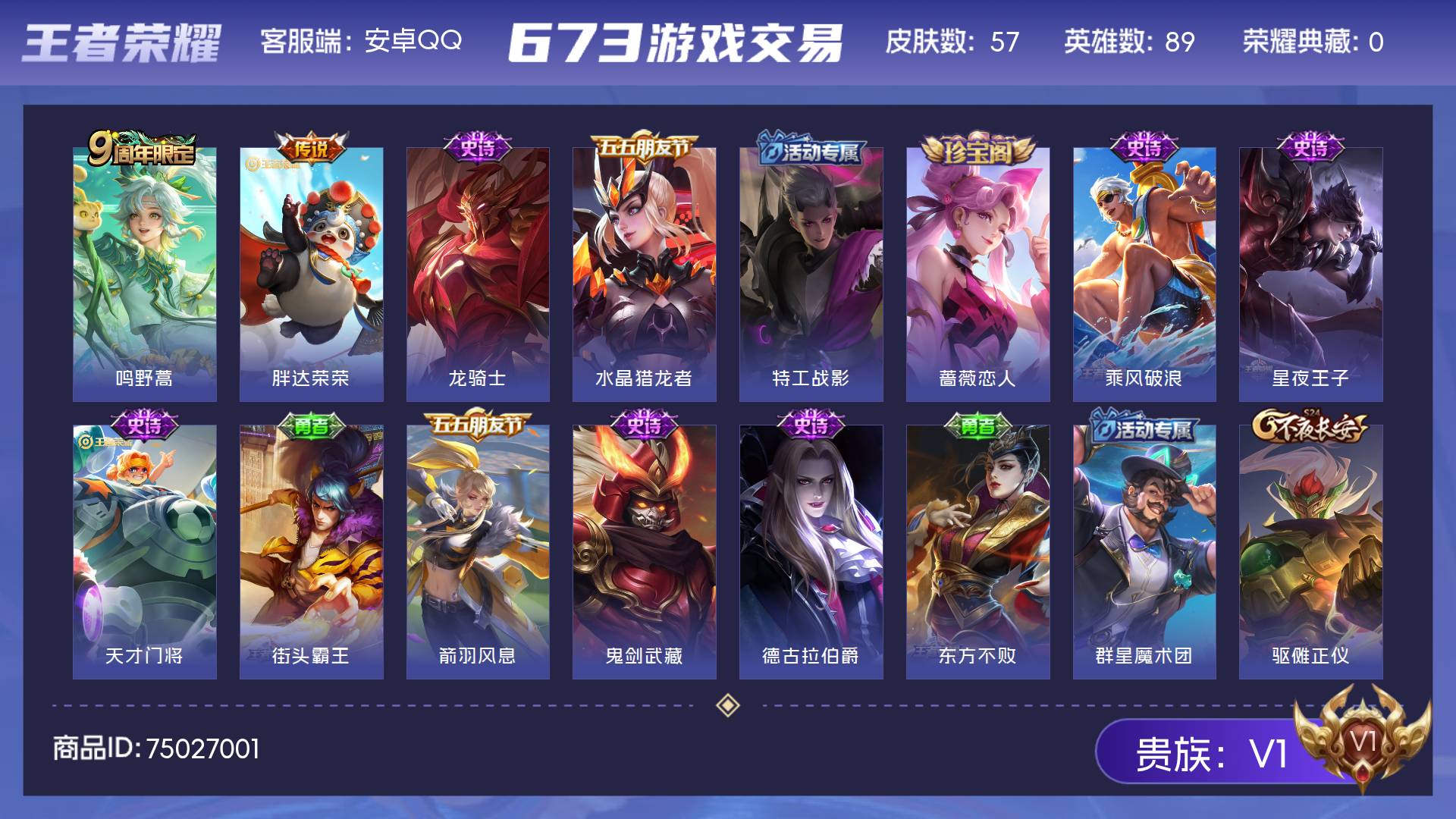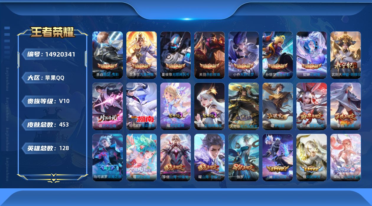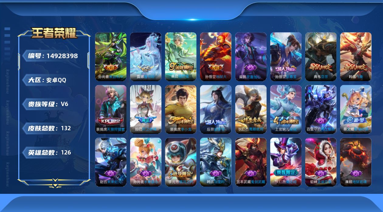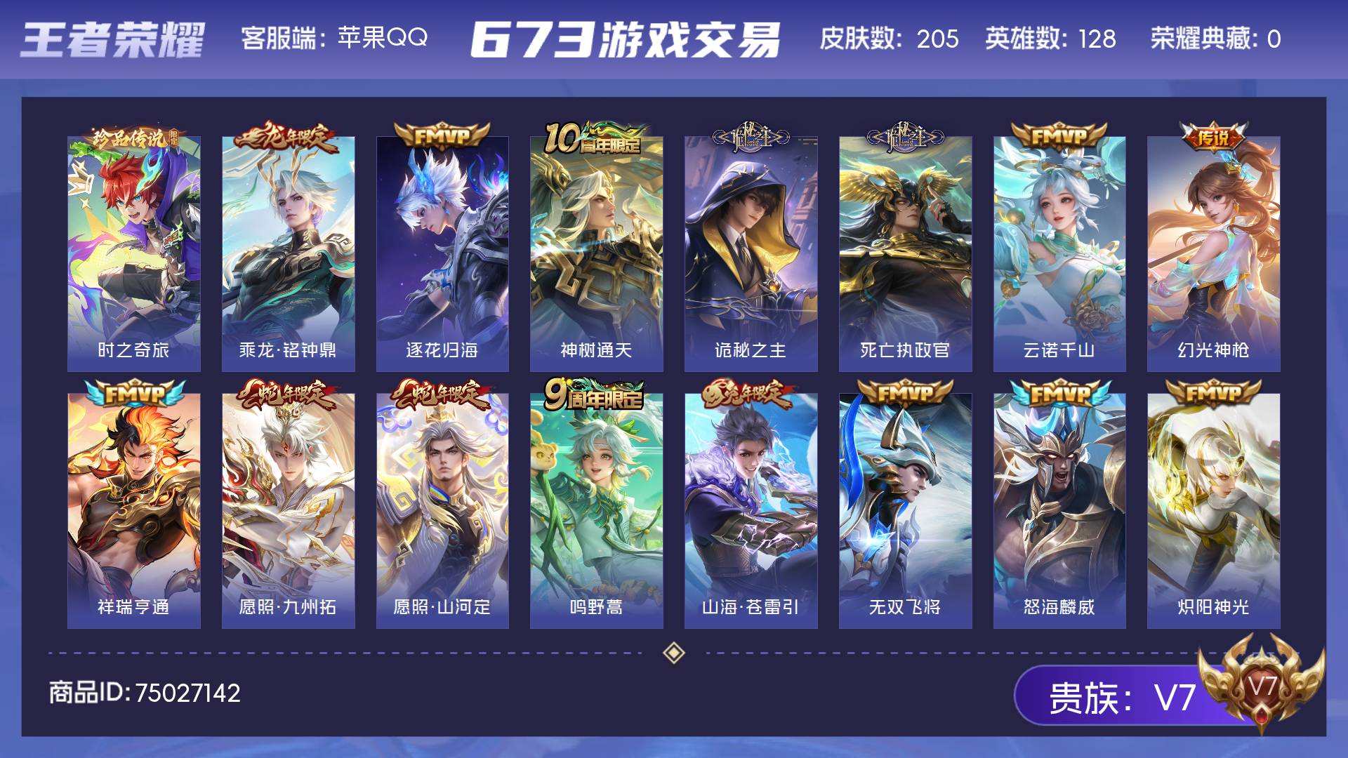 V7 皮肤205 英雄128 绝世王者 珍品传说1 传说17 其他皮肤64