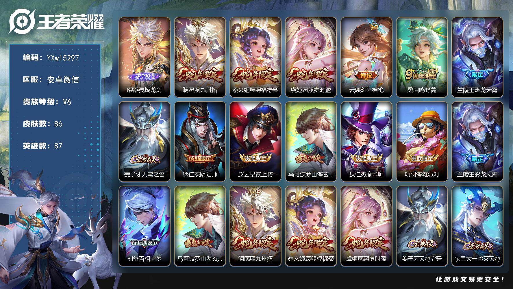 87英雄-86皮肤-1王者印记-80铭文-贵族积分1w