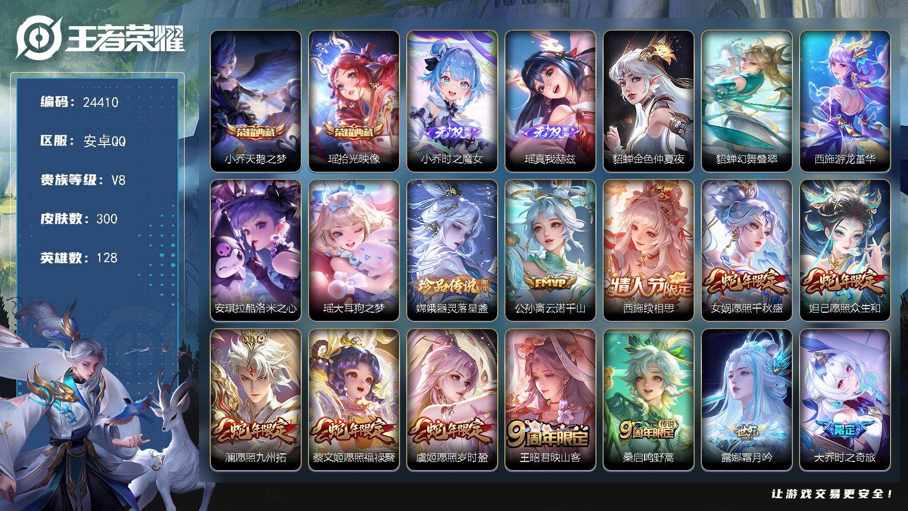 可换绑【极品女号·瑶小乔典藏无双·安琪拉瑶嫦娥3珍品·蛇年妲己虞姬女娲蔡文姬·