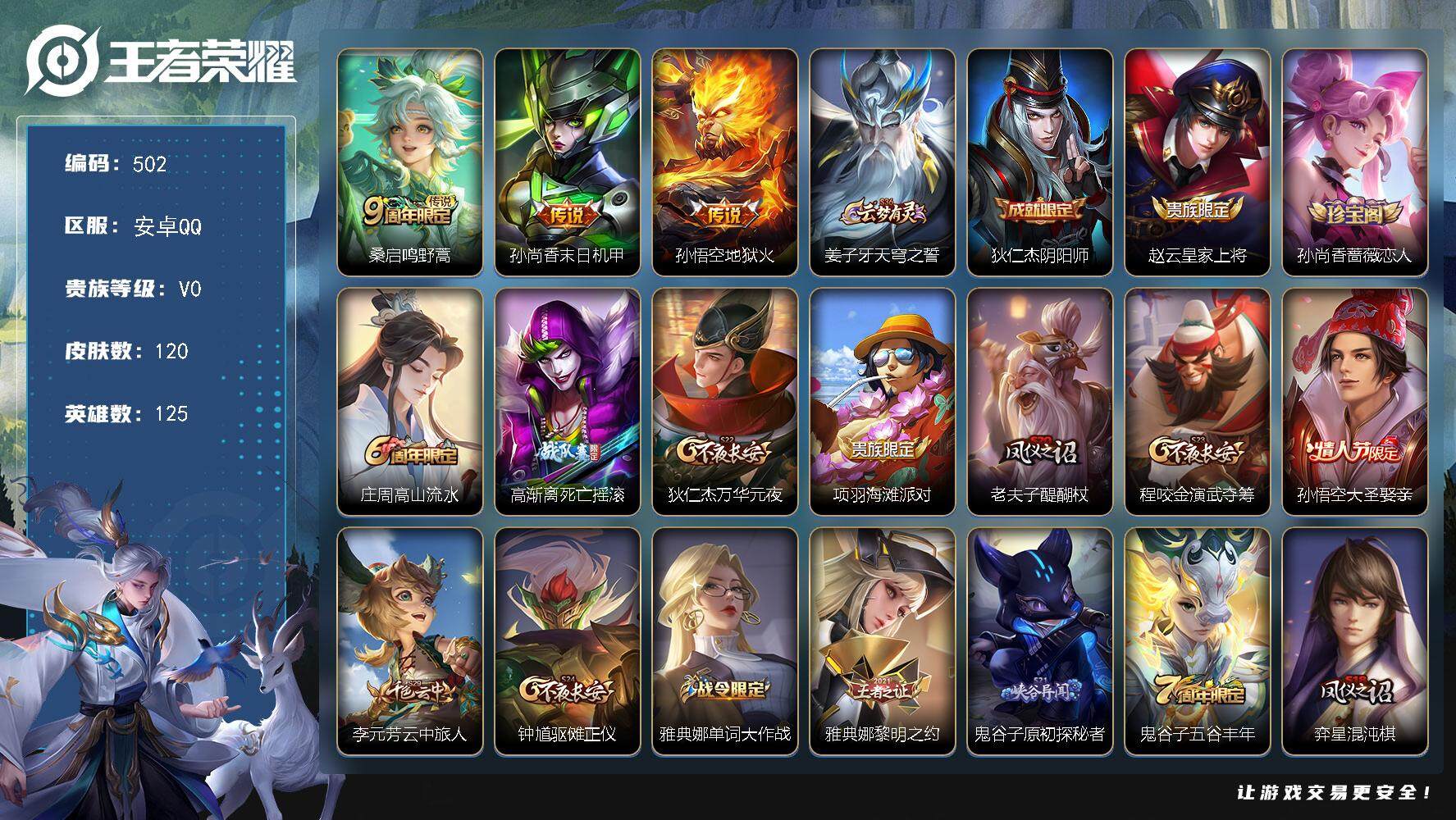 安卓Q-V0-至尊星耀II段位-125英雄-162皮肤-1传说-42史诗【传