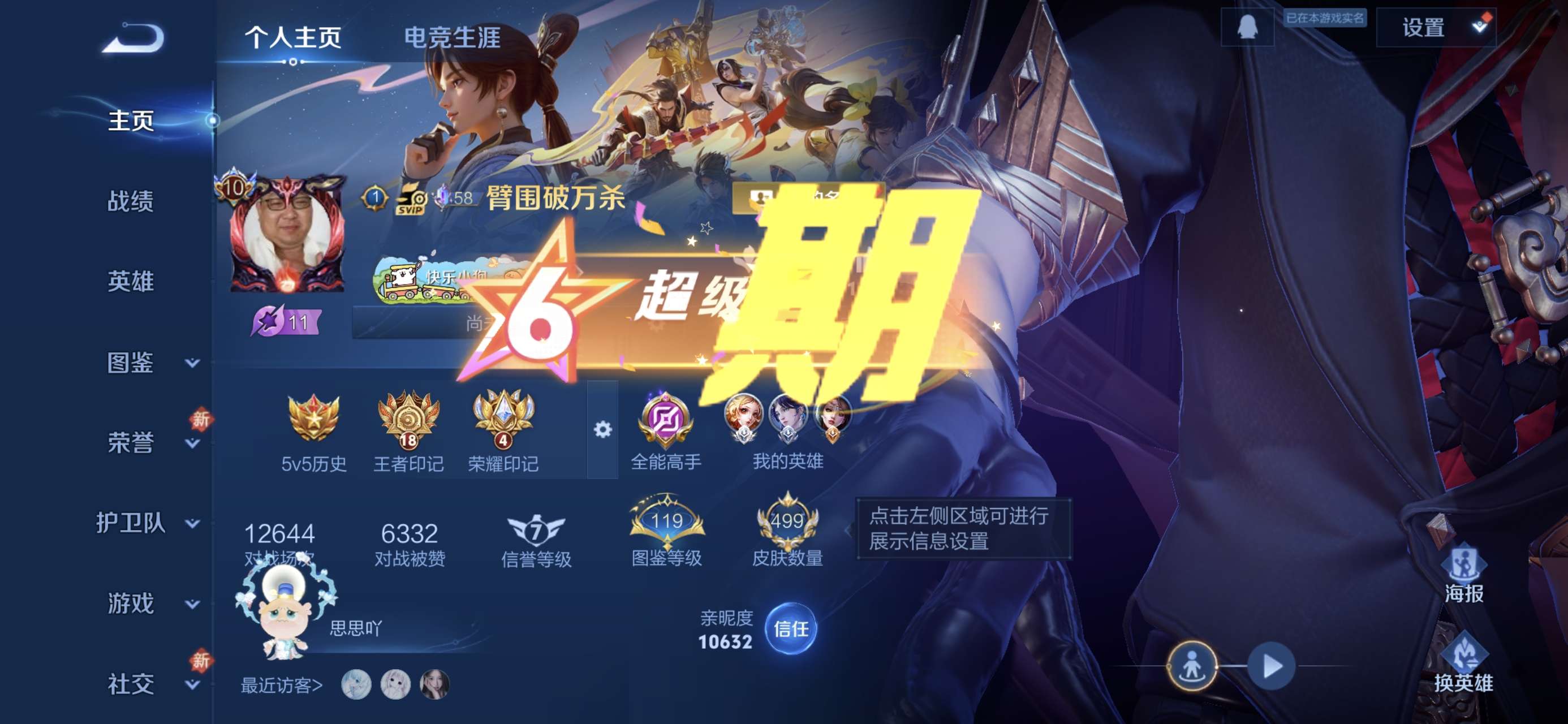 王者V10账号诚心出,曾是无双贵族,底蕴拉满,贵族积分25W+,好友榜第11。499款皮肤,4荣耀典