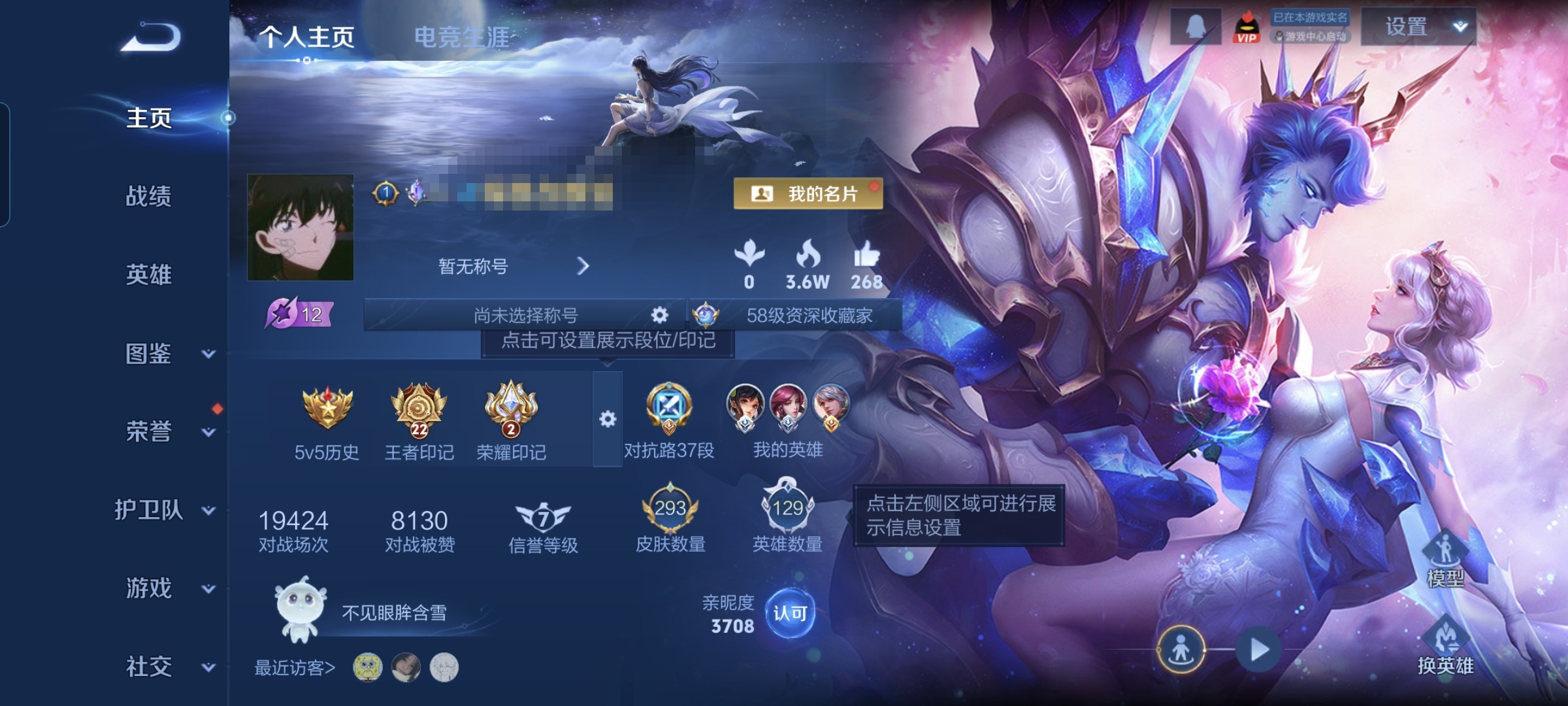 104英雄-86皮肤-2王者印记-40铭文-贵族积分1w