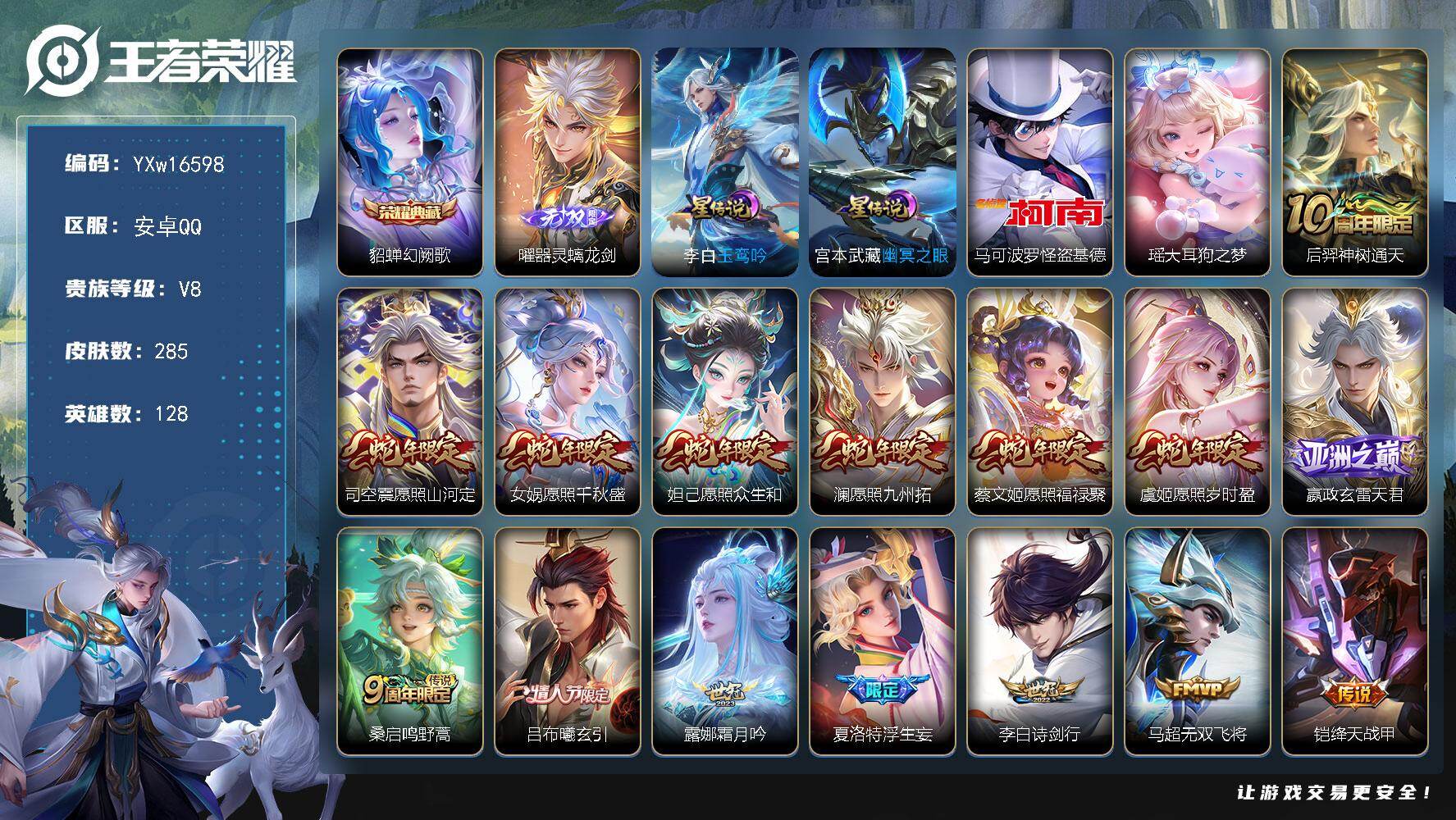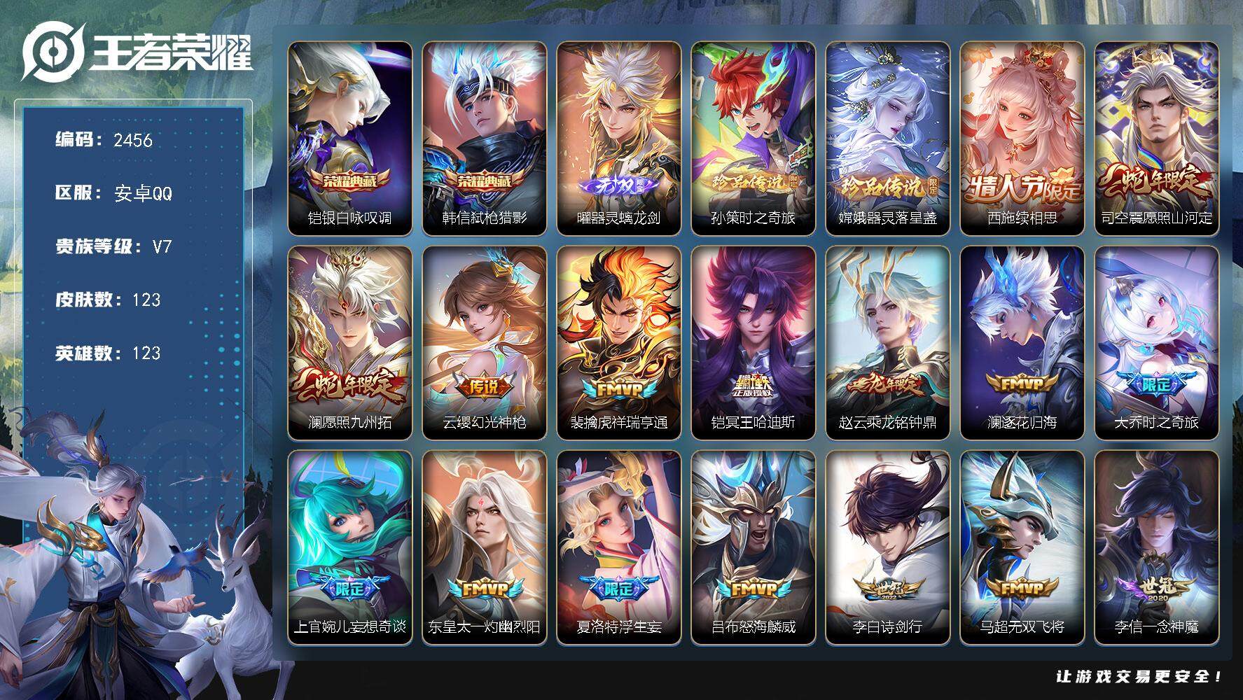 安卓Q-V8-至尊星耀I段位-127英雄-292皮肤-1典藏皮肤-1珍品传说-2