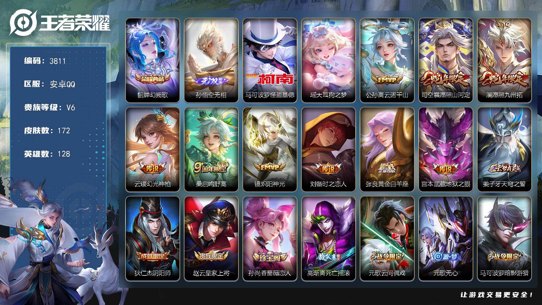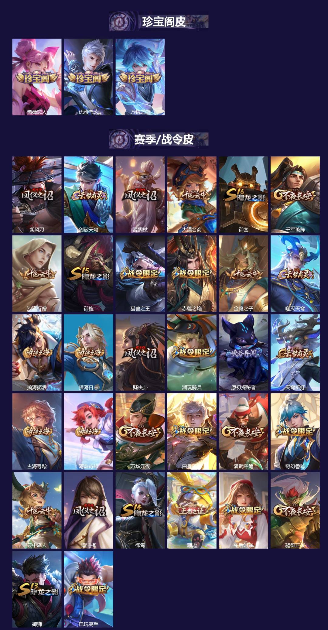 贵族6-贵族积分18117-172皮1典藏9传说1无双2珍品传说-1个英雄全皮