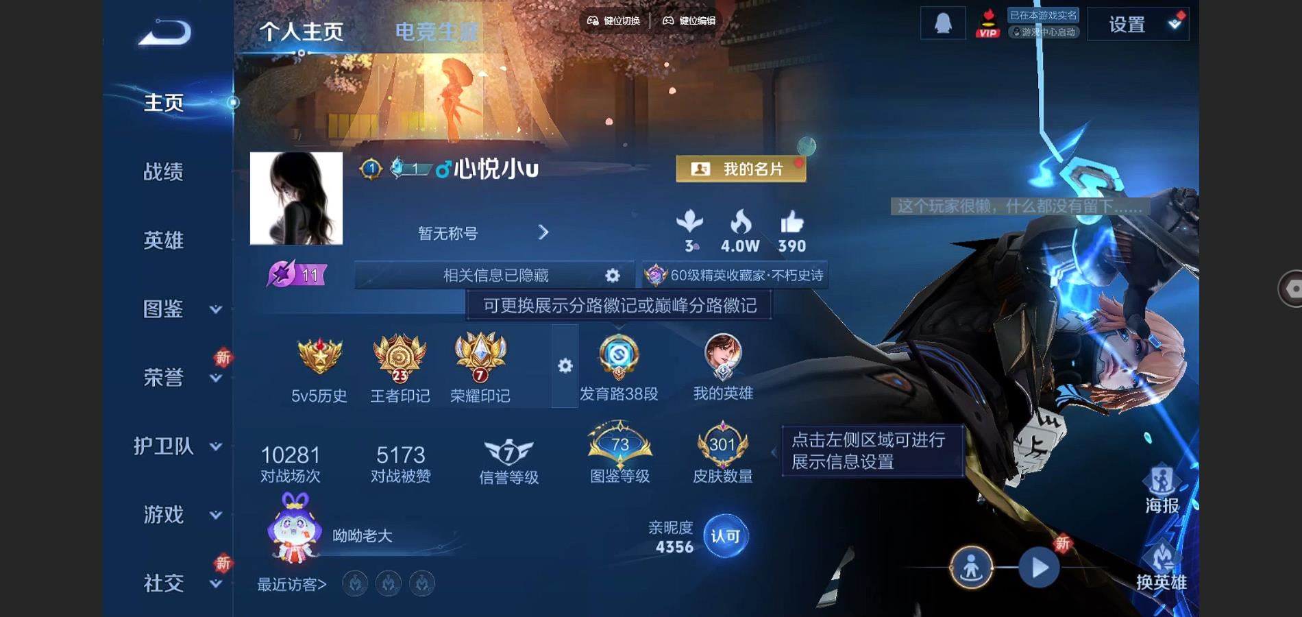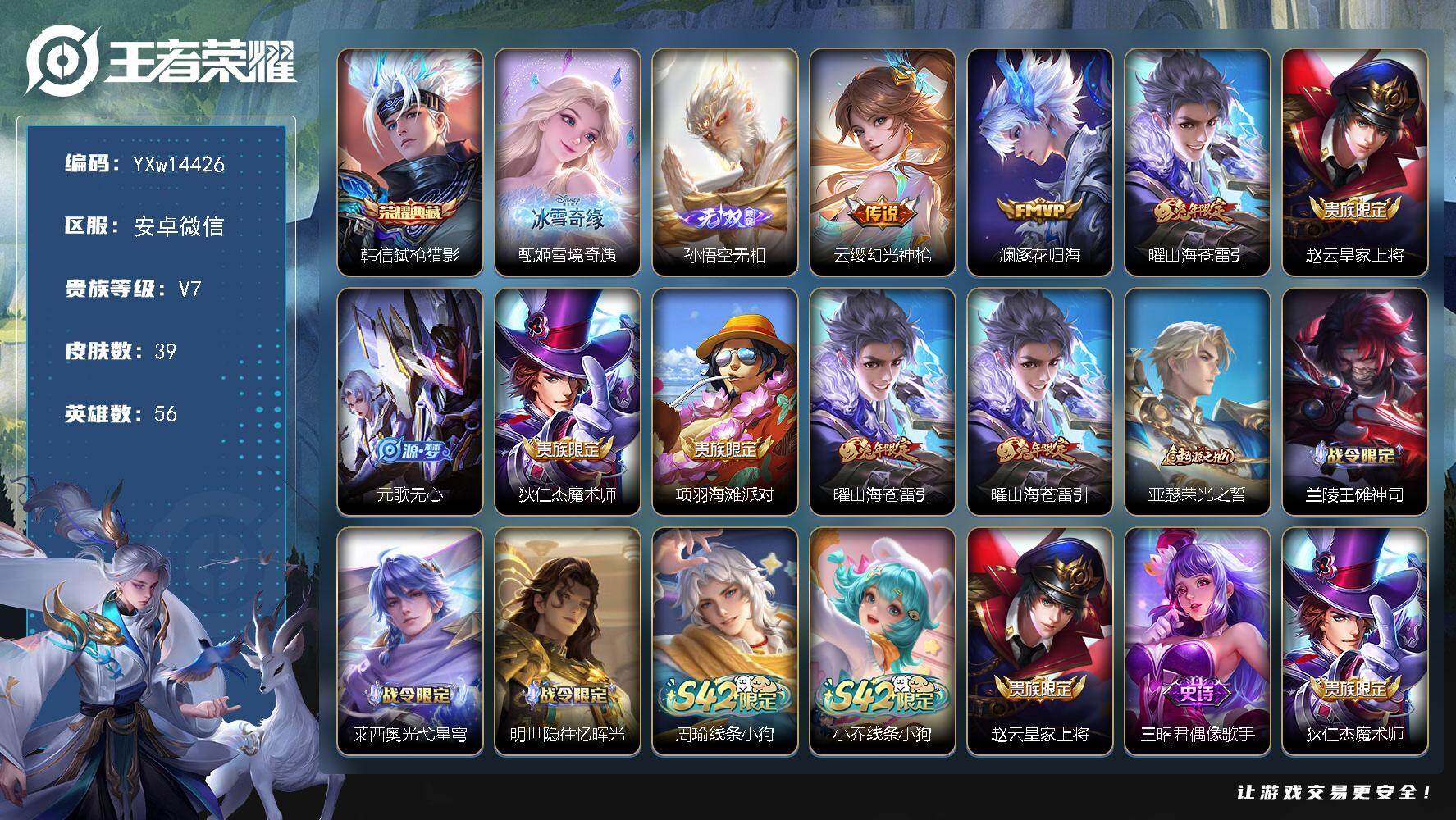 56英雄-39皮肤-2王者印记-6铭文-贵族积分2w