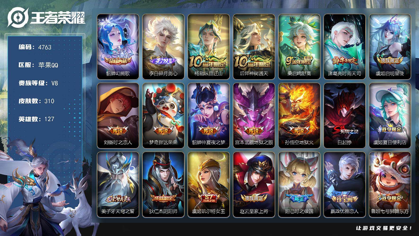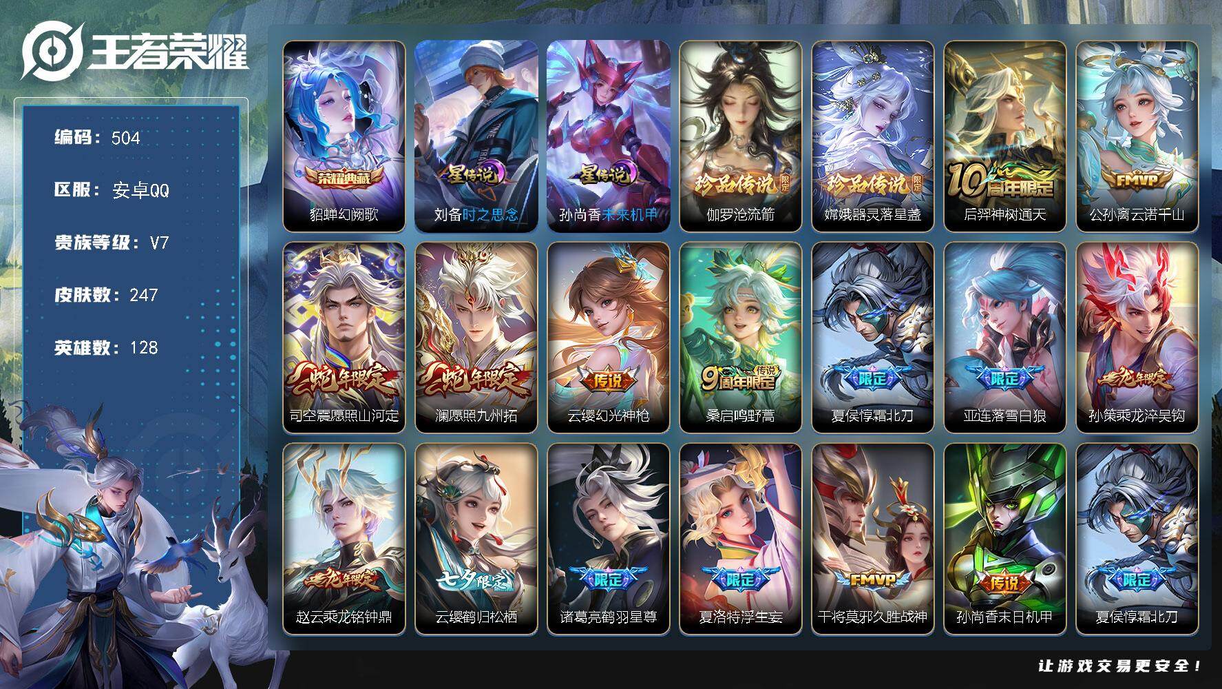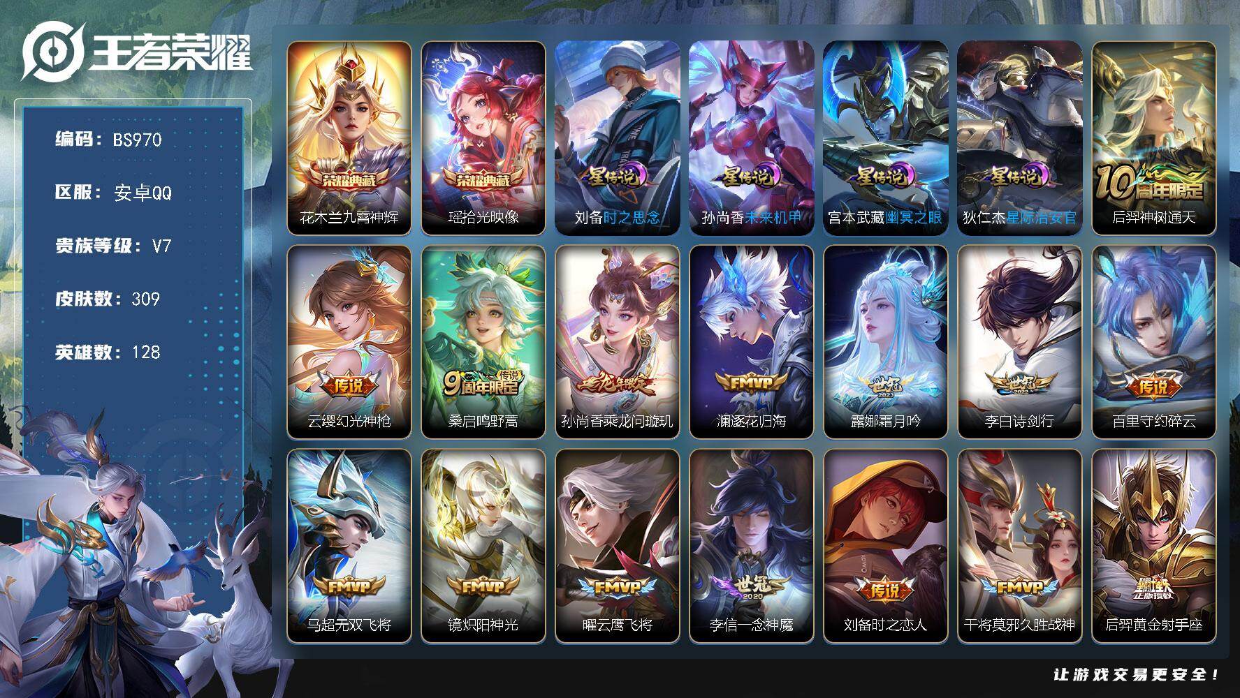 安卓Q-V7-至尊星耀IV段位-128英雄-309皮肤-2典藏皮肤-17传说-7