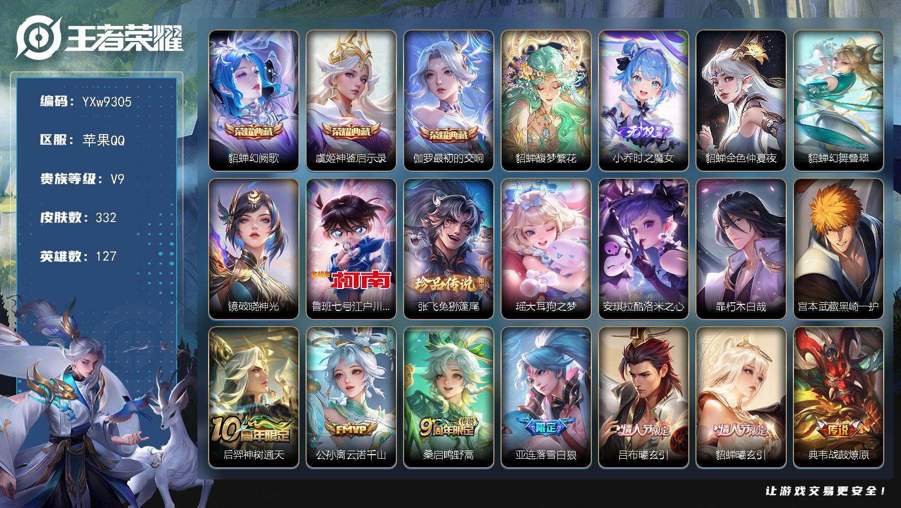 苹果Q-V8-永恒钻石II段位-126英雄-242皮肤-1典藏皮肤-2珍品传说