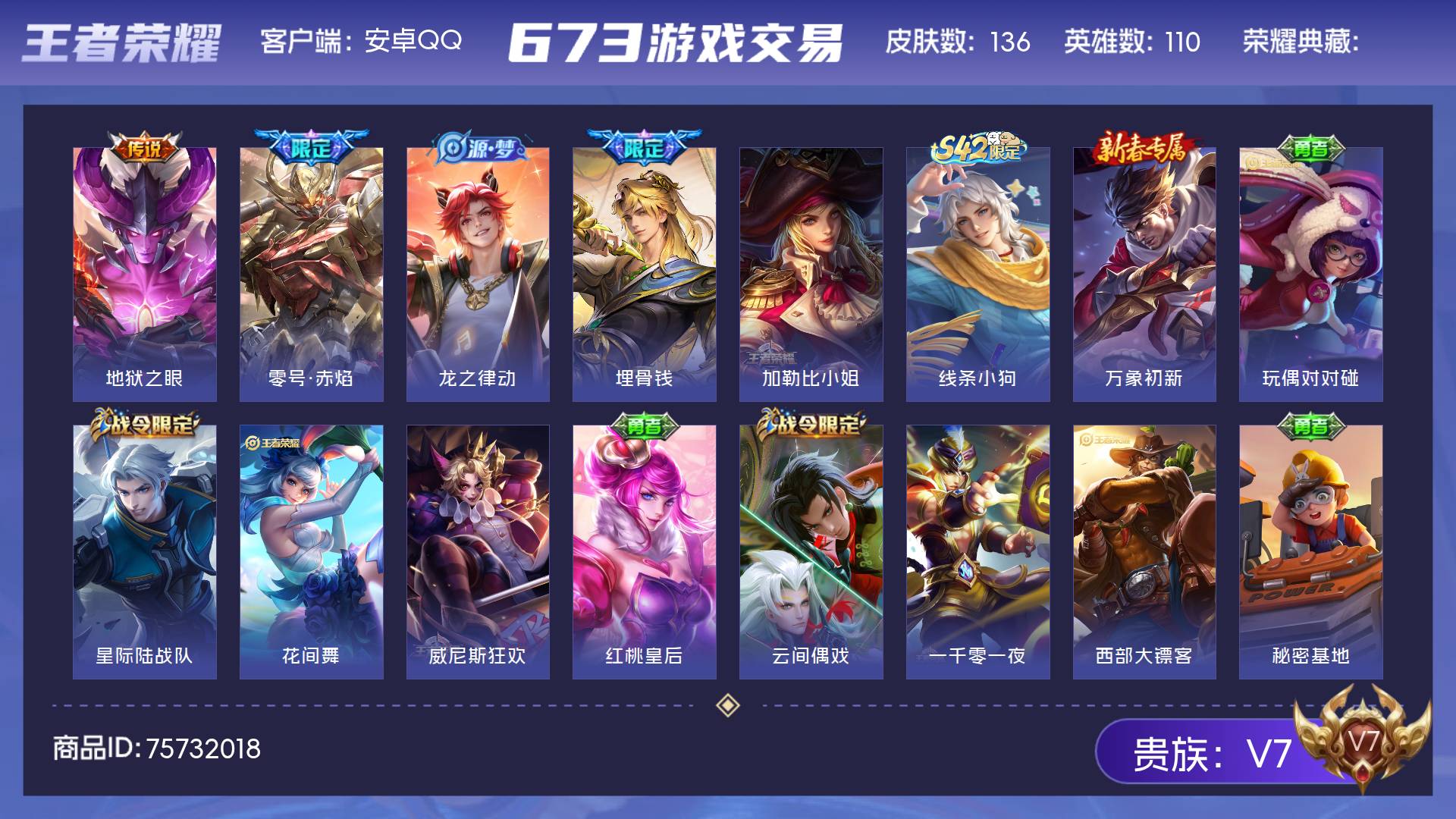 V7 皮肤136 英雄110 永恒钻石 星传说1 传说2 其他皮肤140